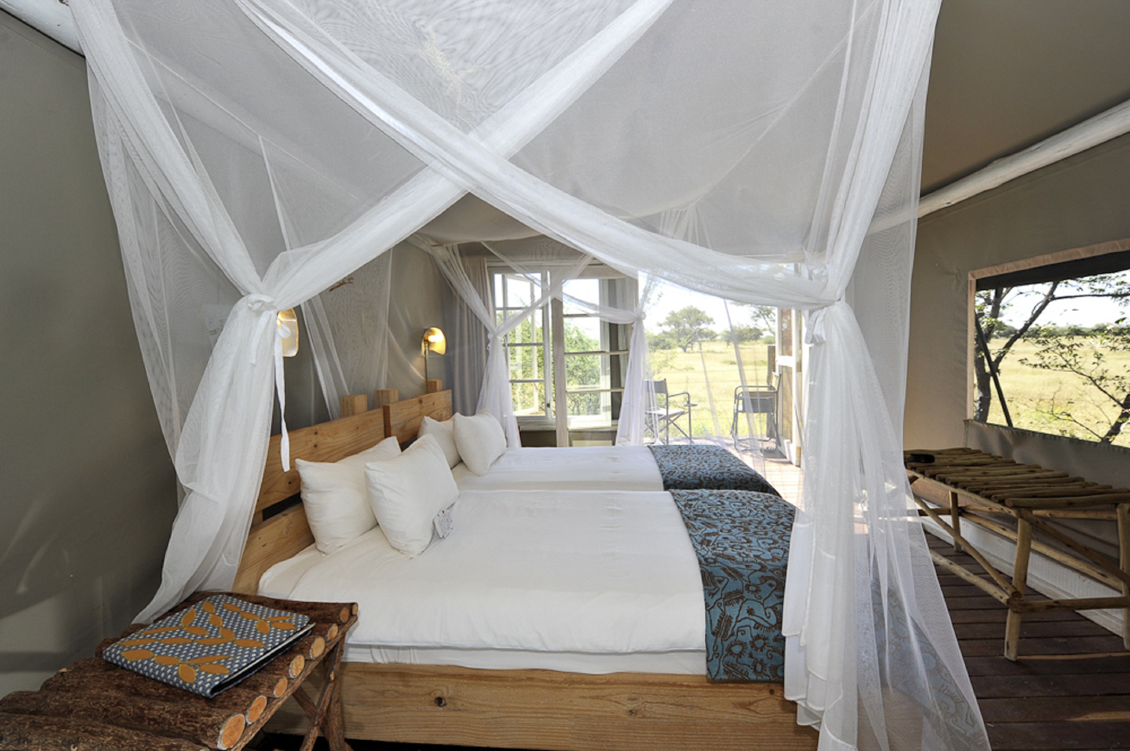 • The tents are on elevated wooden decks to give a better view of the surroundings and have en suite bathrooms with solar heated private showers, fans and mosquito nets.