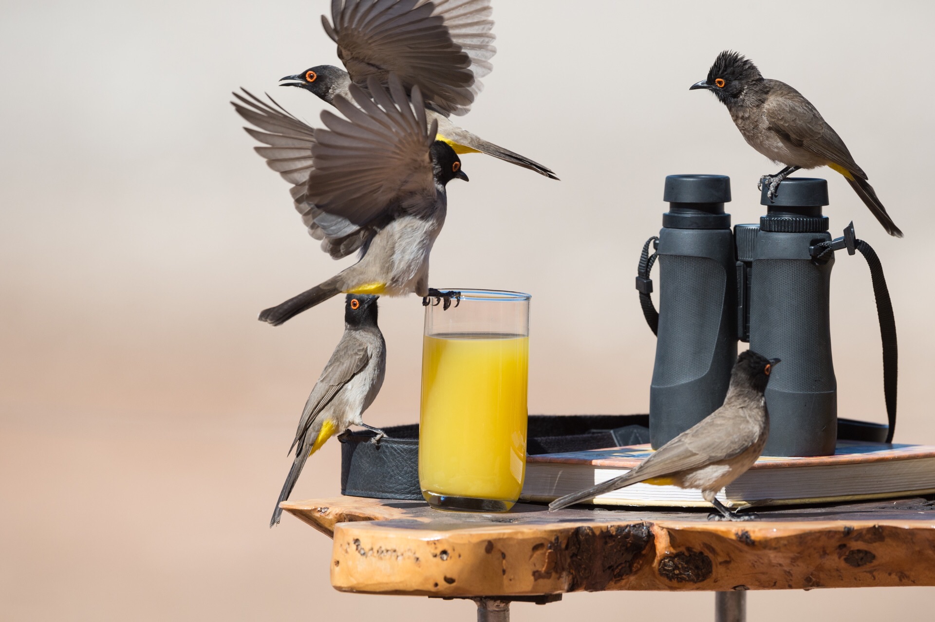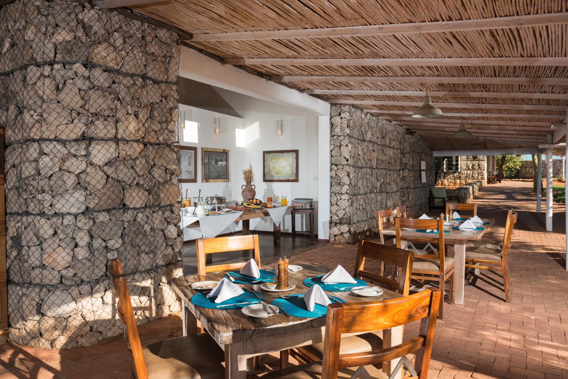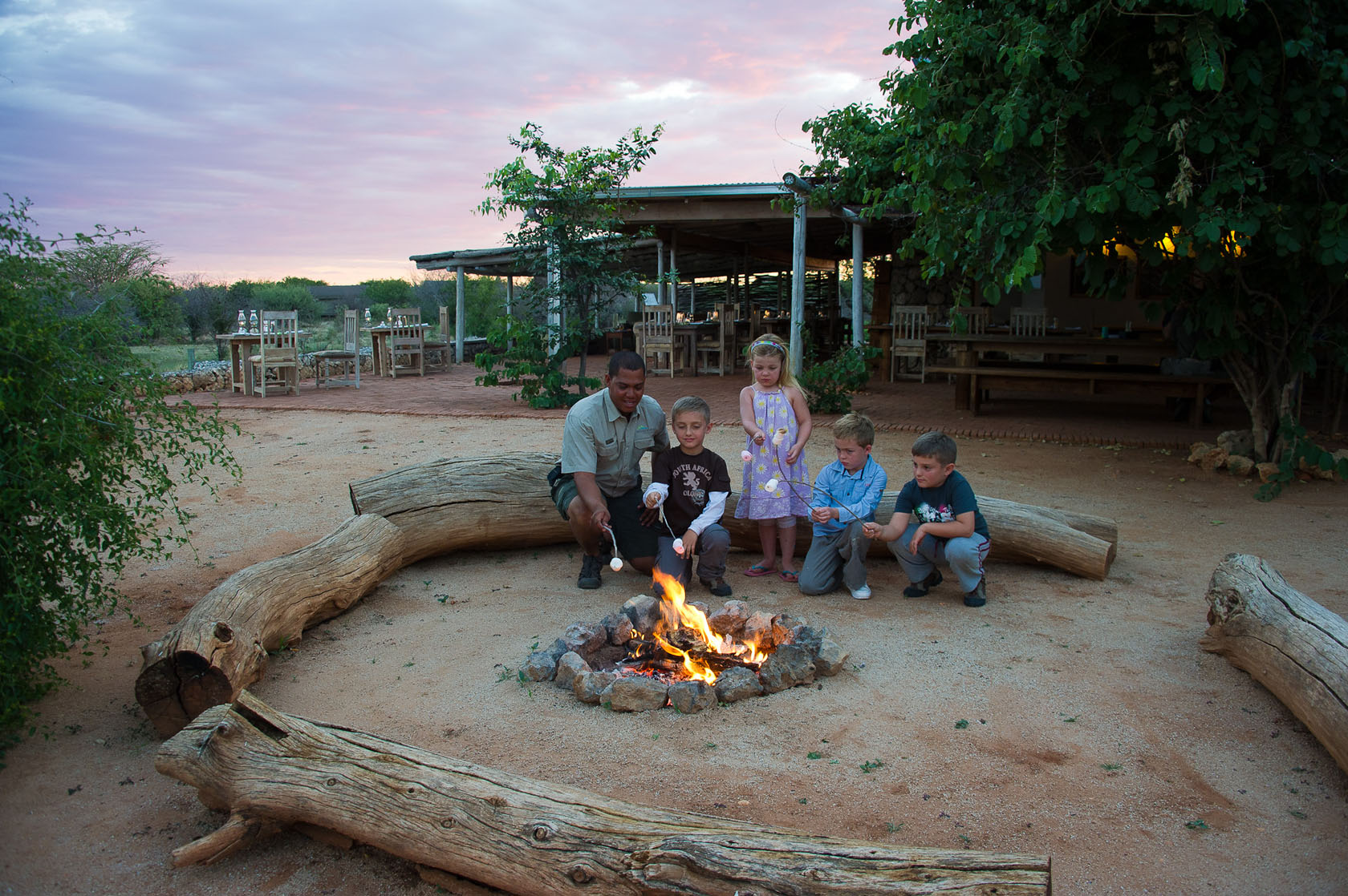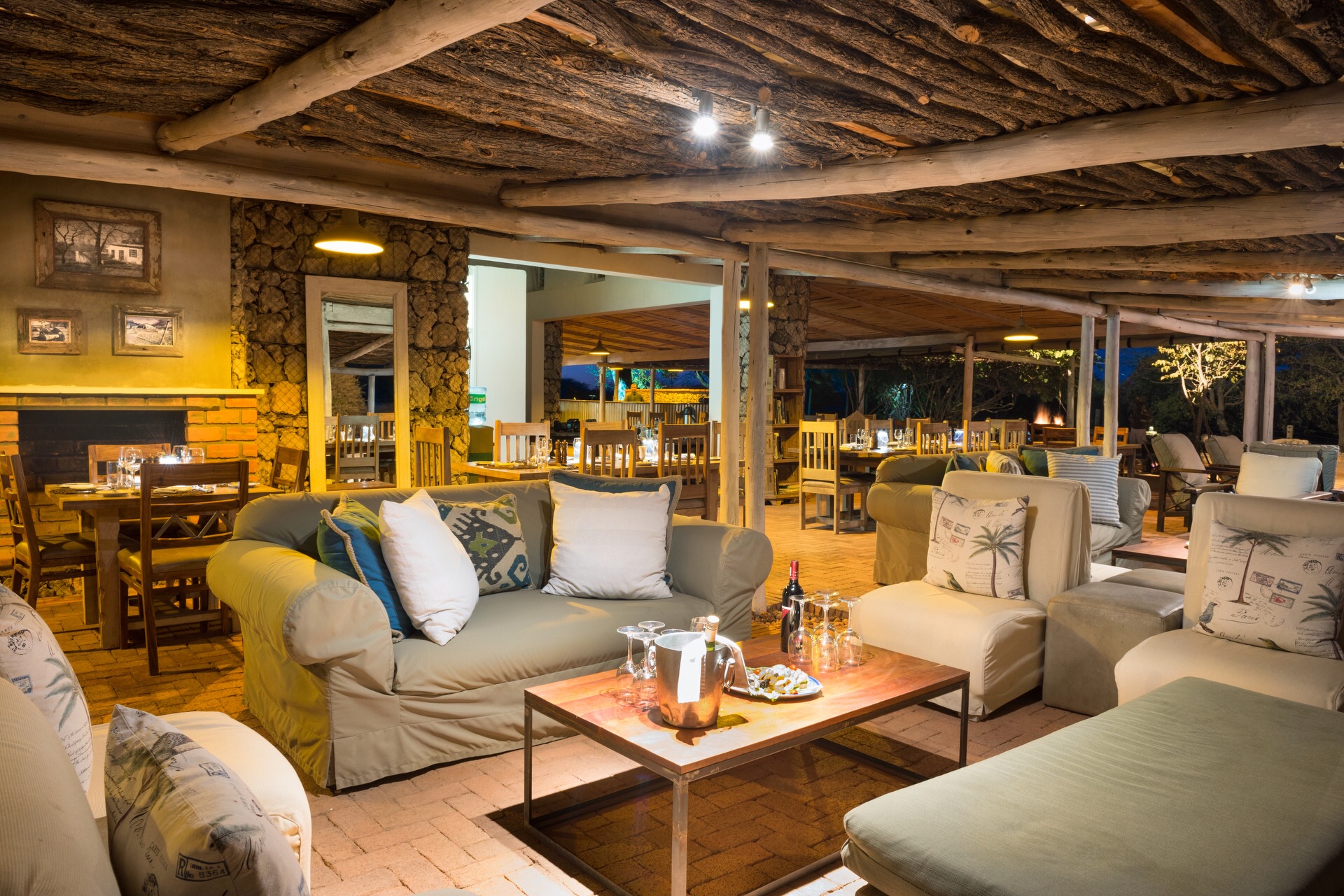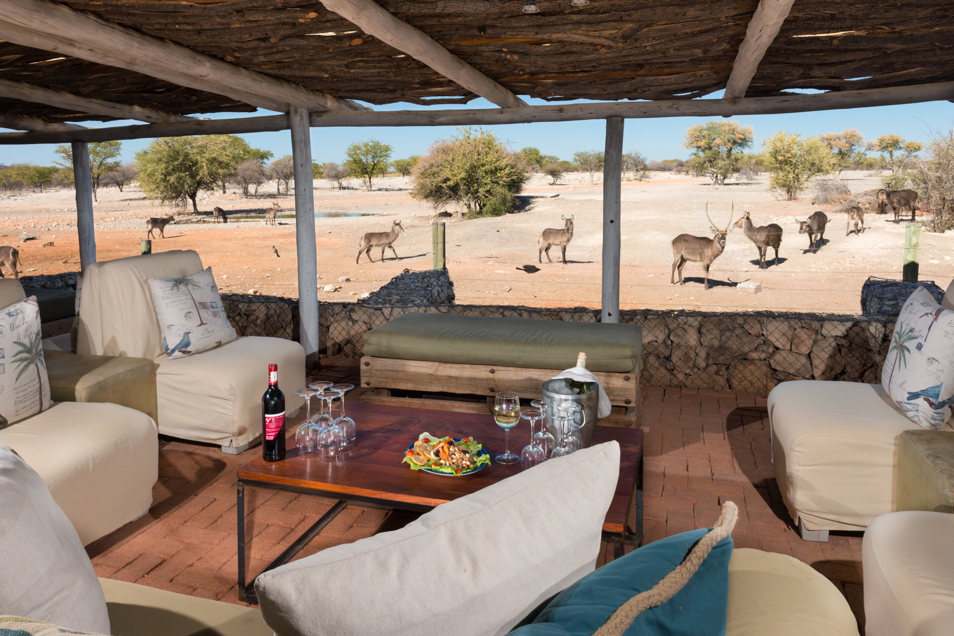 Game drives and guided walks can be arranged and bird-watching and photography opportunities are many and varied. The camp overlooks a floodlit waterhole and its excellently sited hide enables viewing of black and white rhinos and an abundance of wildlife. There is an outdoor swimming pool and outside decks. All meals and drinks are served in the restaurant, where an a la carte menu of regional cuisine is served at lunch and in the evening.