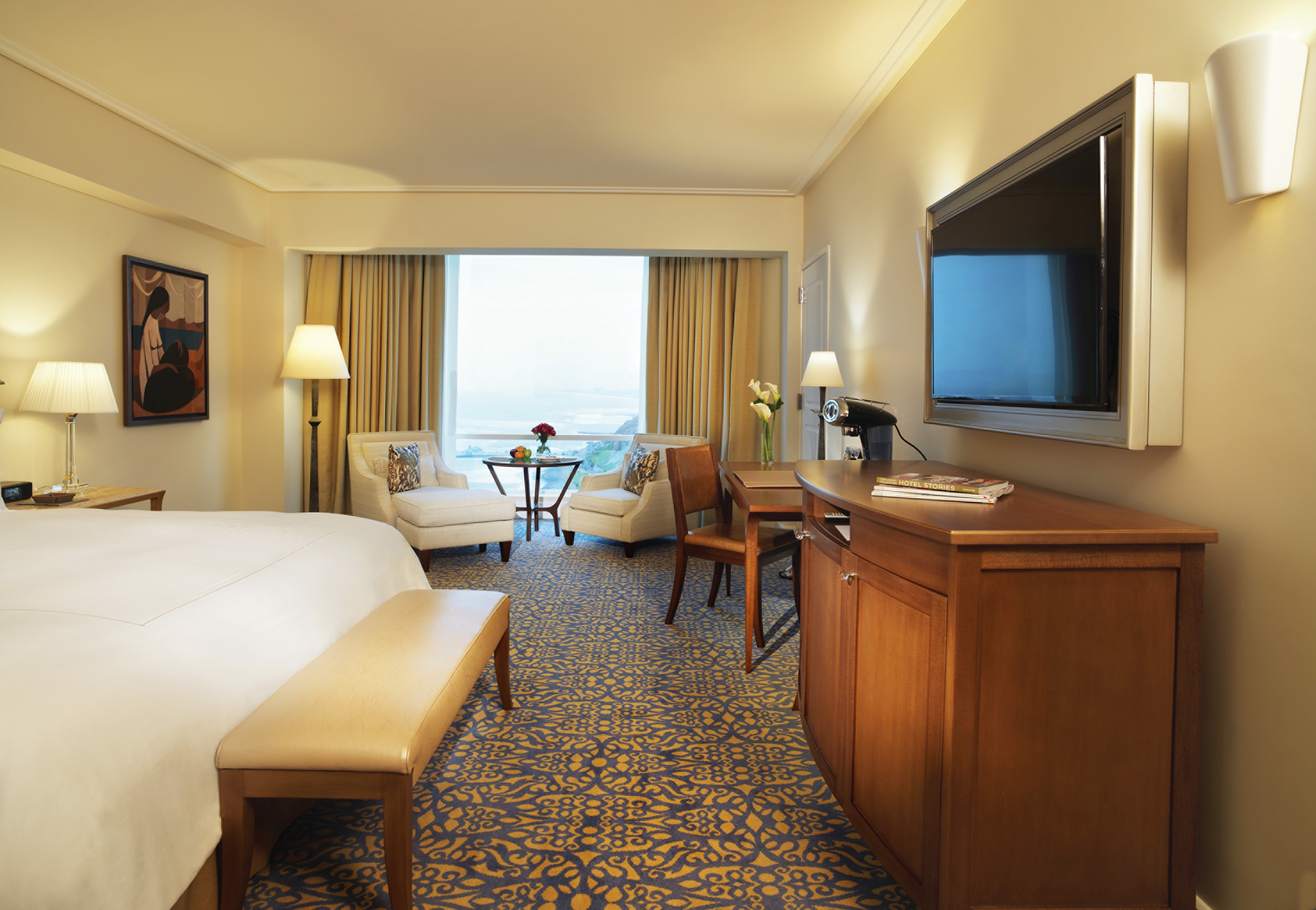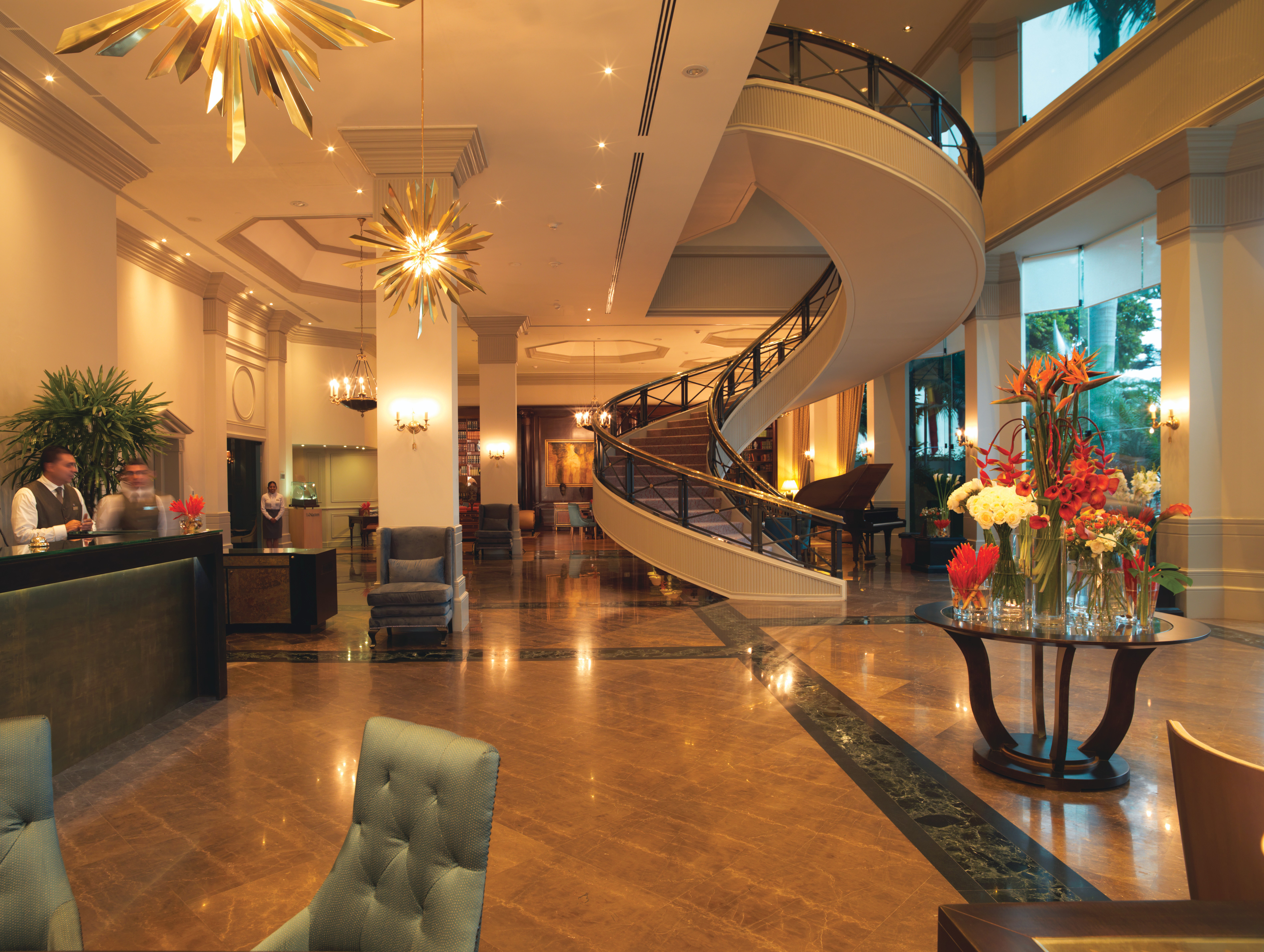 • The hotel has 89 luxurious, well appointed suites with lounge area, air conditioning, LCD TV, WiFi, safe, minibar and private marble bathrooms.