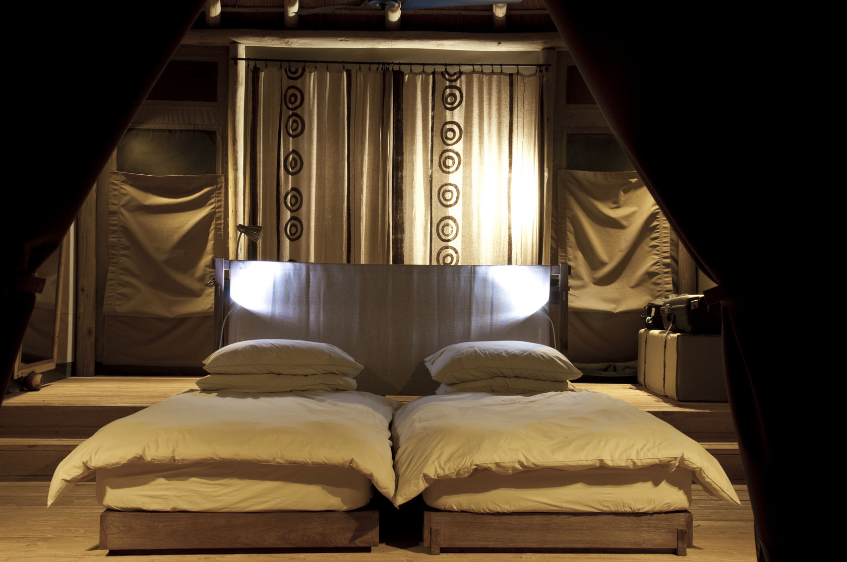 • There are 10 walk in tents with en suite bathrooms, twin or double beds and their own paved private patios affording panoramic views.