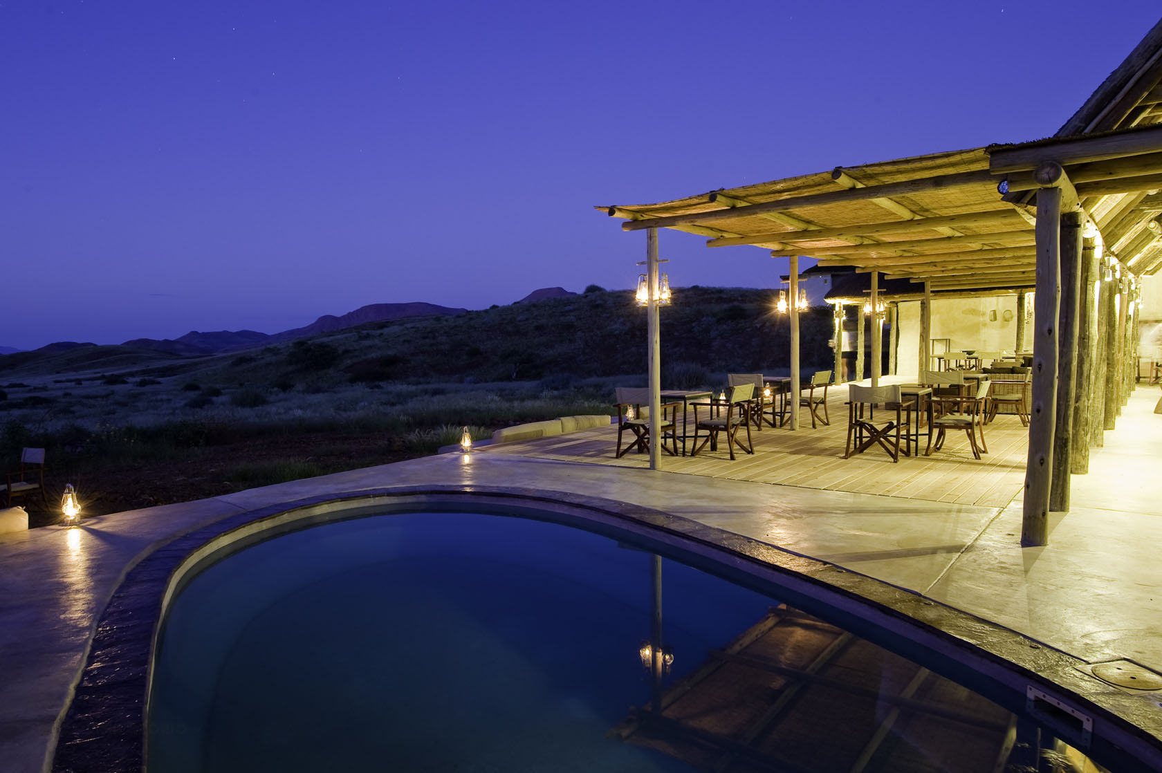 The camp has an outdoor swimming pool where guests can cool off. There is a well stocked bar and lounge. Guests will enjoy a true taste of regional Namibian cuisine served al fresco under clear African skies.