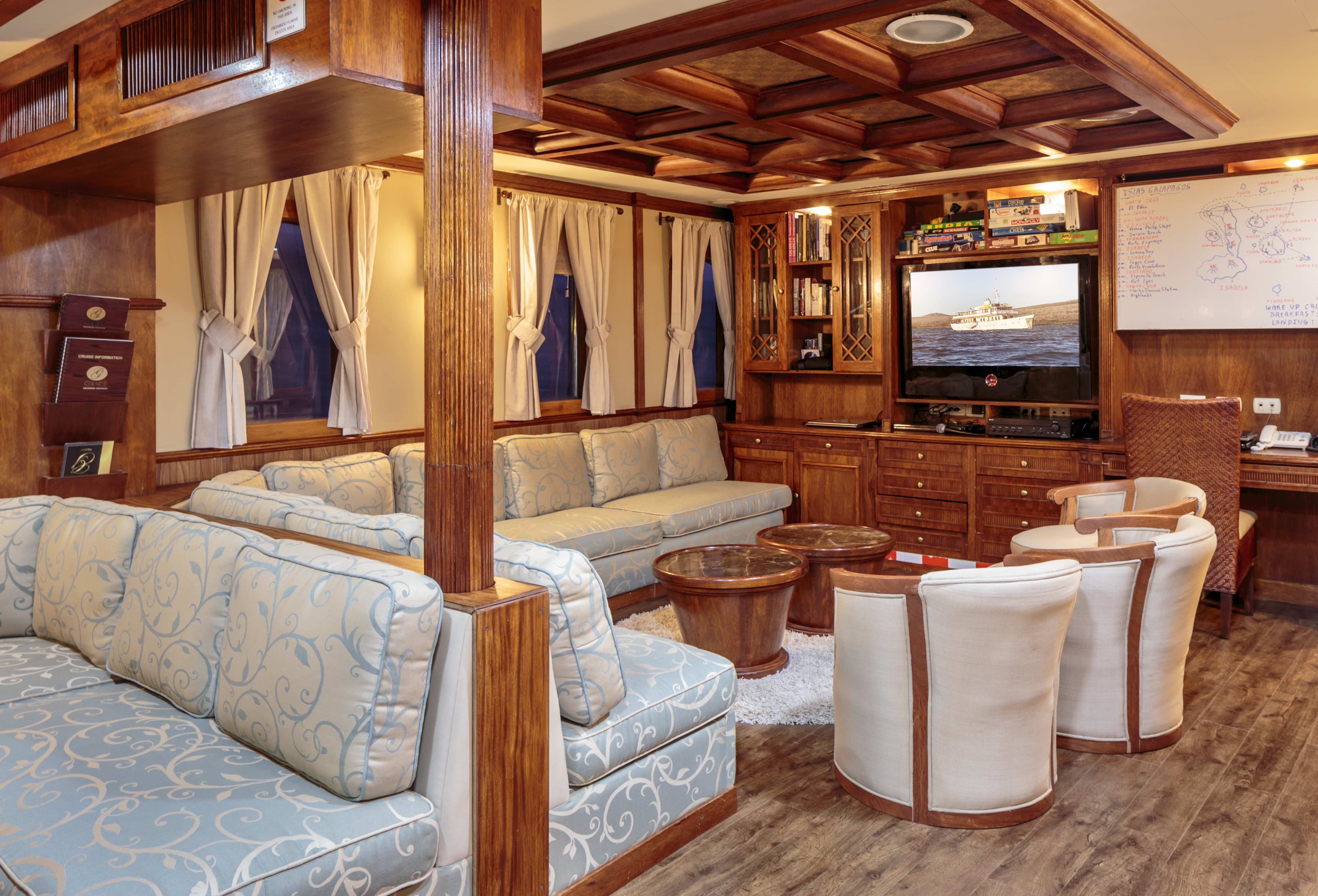 The 16-passenger Grace Yacht Galapagos was given as a wedding gift to Prince Rainier and Princess Grace of Monaco by Aristotle Onassis. A cruise aboard the Grace will take you back in time on one of the finest cruises available in the Galapagos Islands. The Grace boasts a high crew to-passenger ratio and the experienced naturalists aboard have been carefully selected for their knowledge and professionalism. The public areas include a large lounge area with sofas and chairs, a bar and a sun deck with hot tub and sun loungers. Dining on the Grace is excellent and can be enjoyed both inside or on deck.
