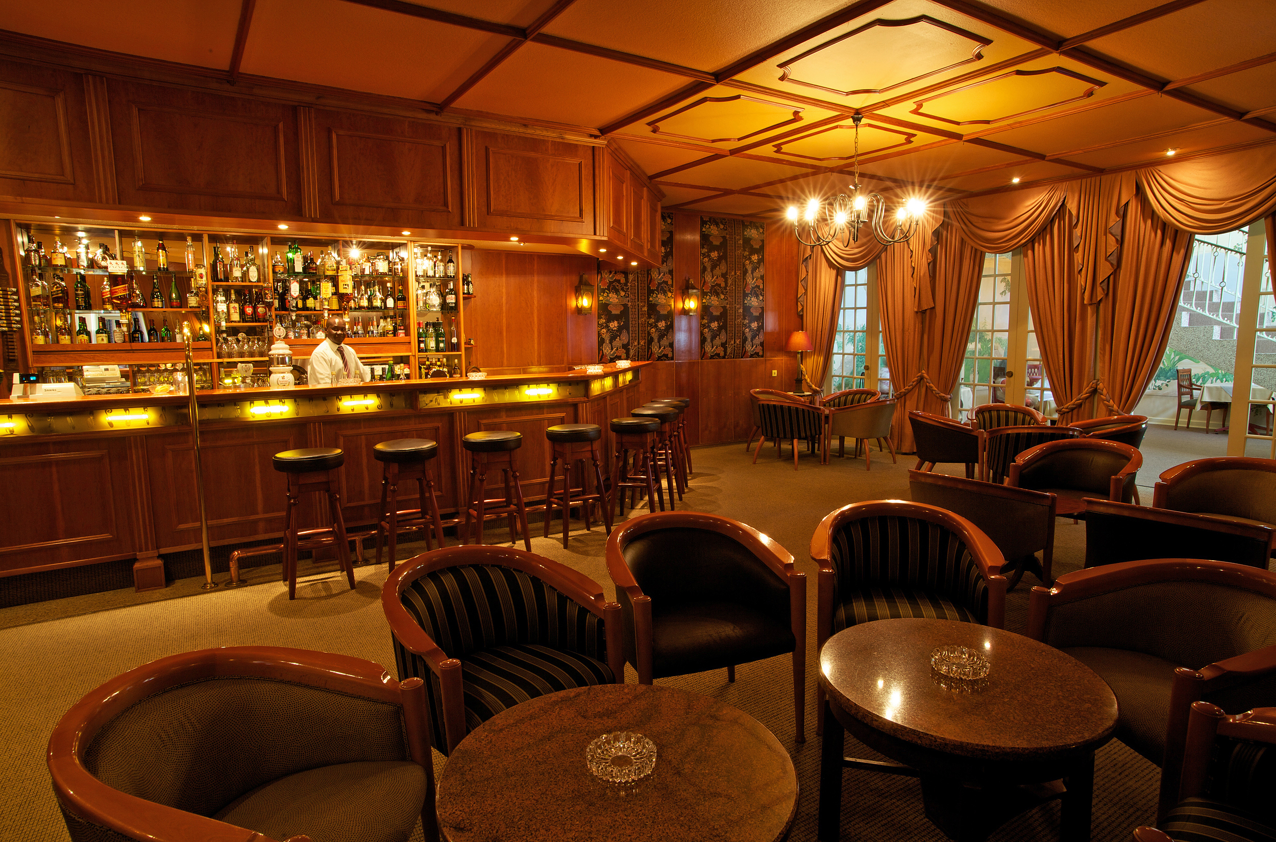 Guests at the Hansa Hotel are well placed to participate in activities such as sand boarding in the local dunes, big game viewing at the nearby game parks and sightseeing tours. Light lunches are served in The Terrace Restaurant and breakfast and a la carte evening meals in the Equestrian Restaurant. The hotel has a comfortable residents’ lounge, library and well stocked bar.