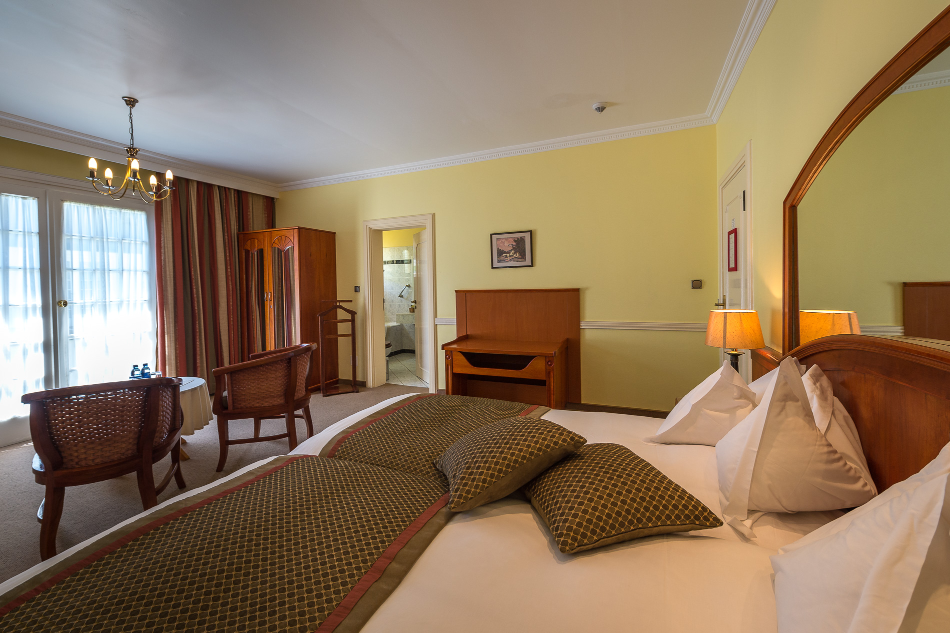 There are 49 spacious double or twin rooms with en suite bathroom, 4 suites with their own separate lounge and en suite bedroom and 5 family units with an adjacent second bedroom, suitable for children.