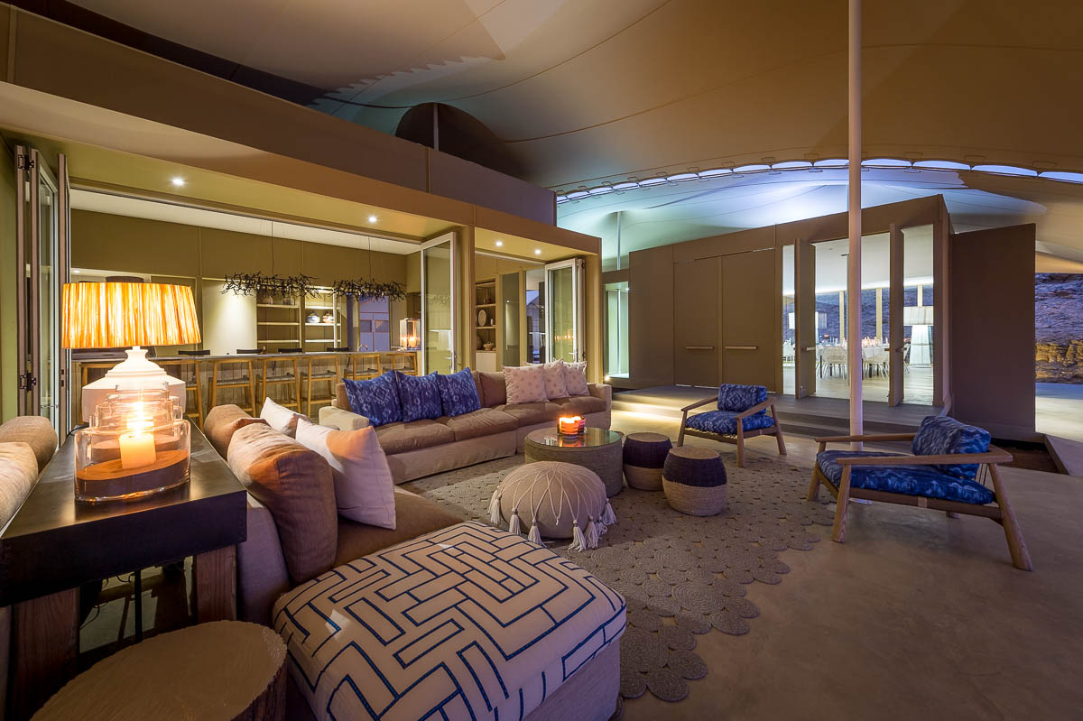Game drives, safaris and guided walks are arranged, as well as studies of rare historic plants and the semi-nomadic Himba tribe, who still inhabit the region. Elephants and rare black rhinos can usually be encountered as well as other wildlife and bird life. An open plan lounge, bar and dining area, where wholesome local cuisine is served, has spectacular views of the desert and there is an outdoor swimming pool.