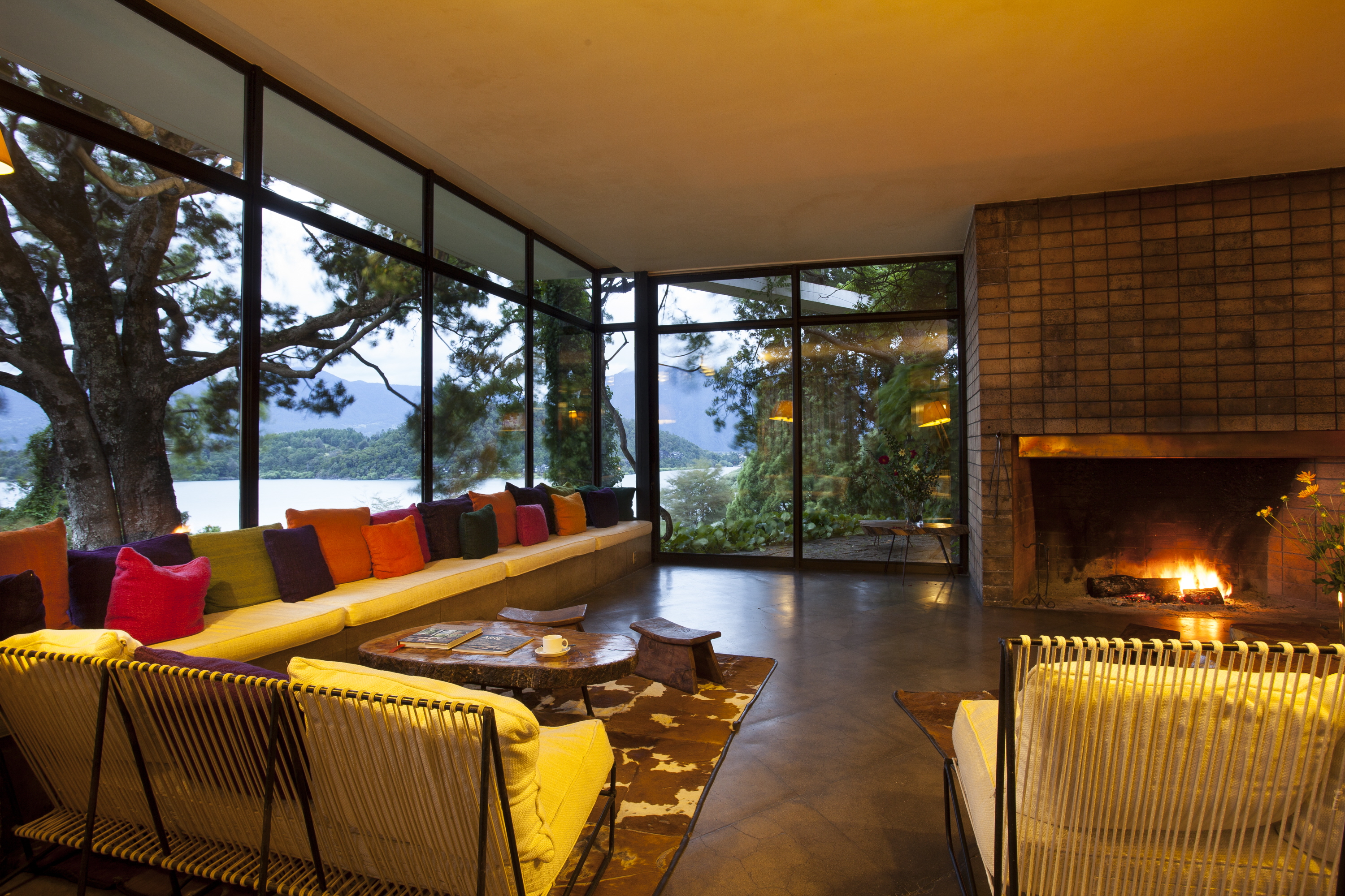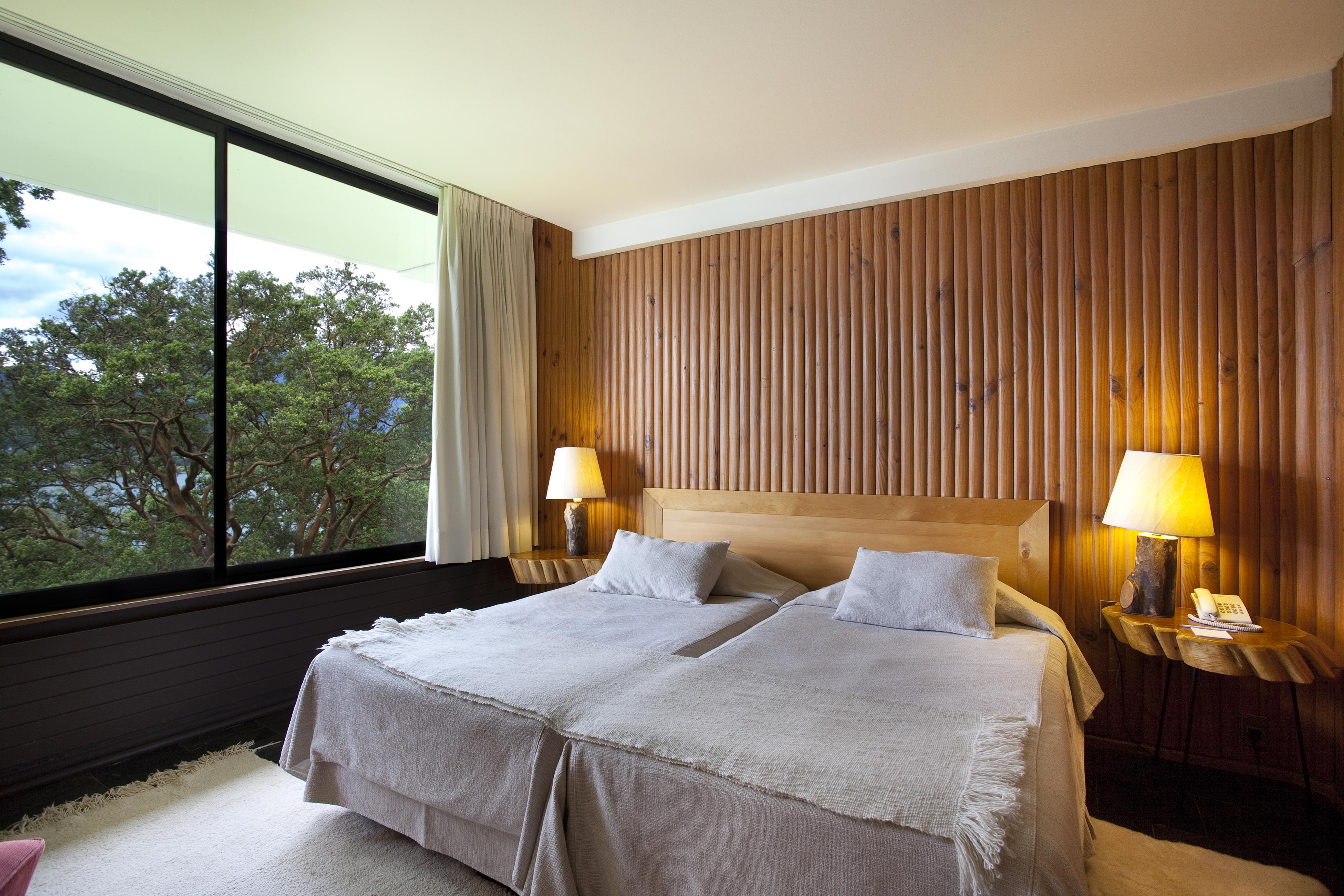 • All of the 16 rooms feature panels made of local woods and stones, private fireplace and large windows with views of Lake Villarrica and the gardens.