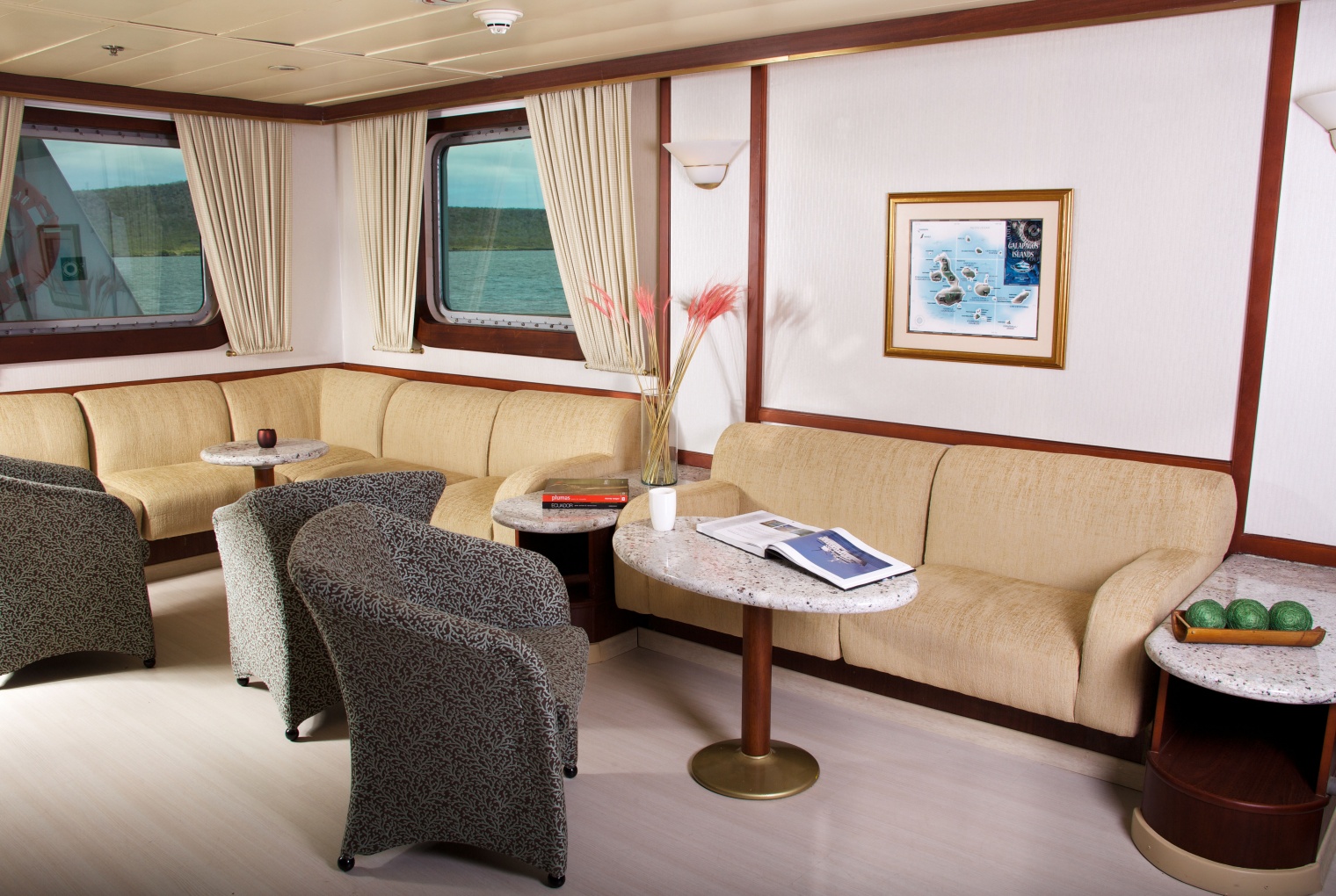 Isabela II offers the efficiency and intimacy of a small yacht as well as the luxury and amenities of a larger ship. Three expert naturalists lead daily hikes and snorkelling to observe incredible Galapagos Islands wildlife. On board, guests can take advantage of a full range of facilities. There is an exercise room on the Boat Deck and a jacuzzi for guests wanting to relax. A shaded bar is positioned on the Boat Deck and ample sun loungers. On the Main Deck is the bar and a large dining room where guests enjoy fine dining. There is also a gift shop and business centre.