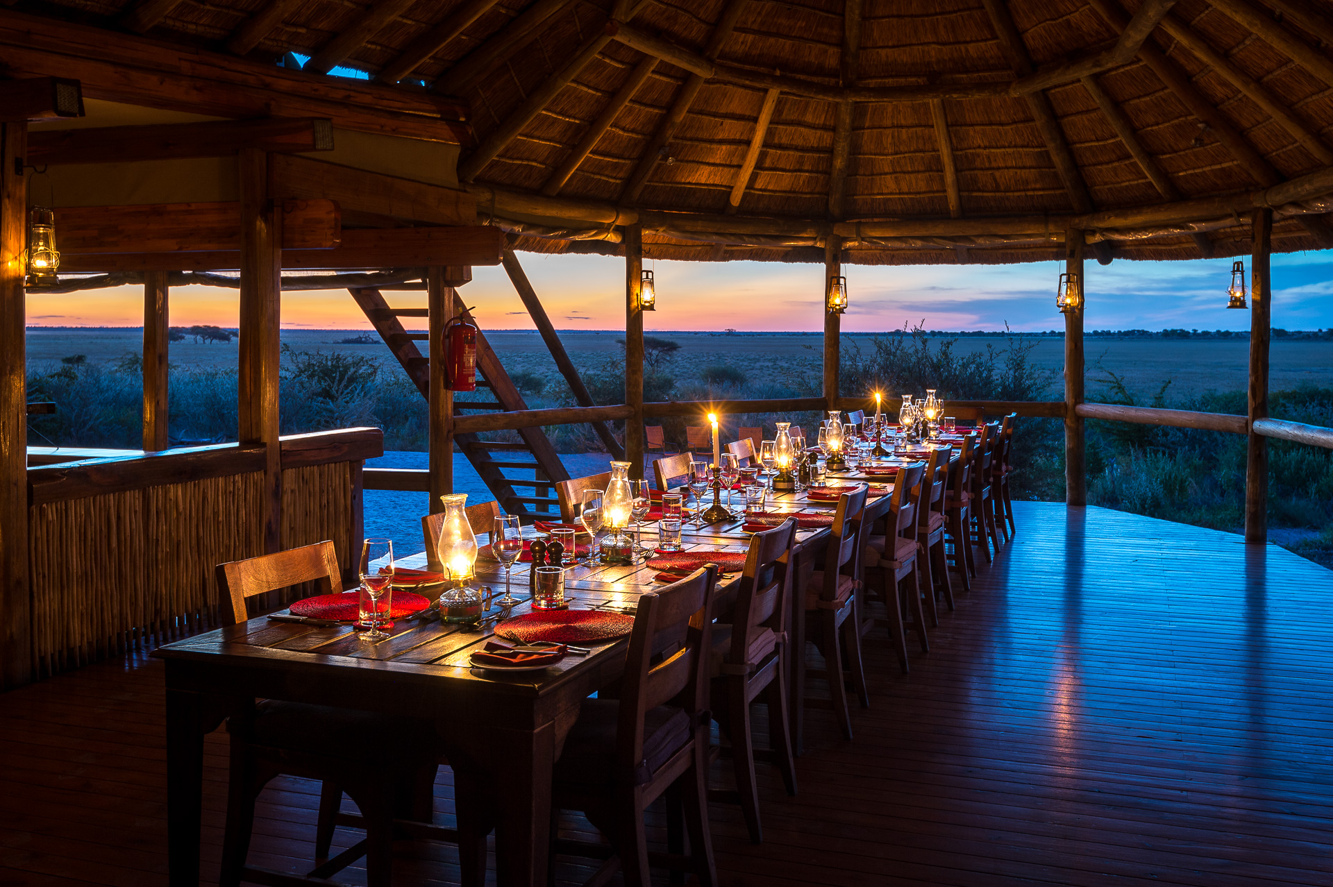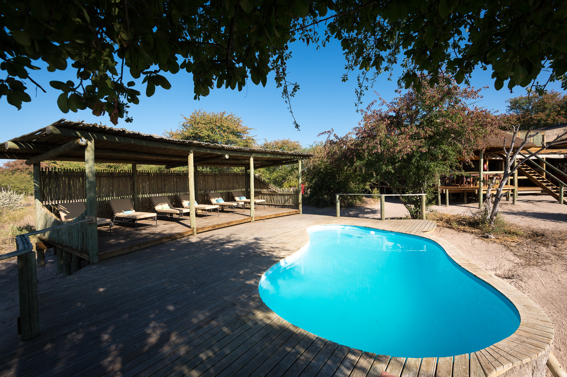 Game drives are led by specialist guides and full day safaris and bird-watching trips can be booked. Many of the staff are descendants of Bushman clans, so real insight and expertise are assured. An outdoor swimming pool is the perfect place to cool down and the bar and lounge are places to relax and unwind and enjoy the superb views. Delicious meals are served in the company of your guides, generally under the stars.