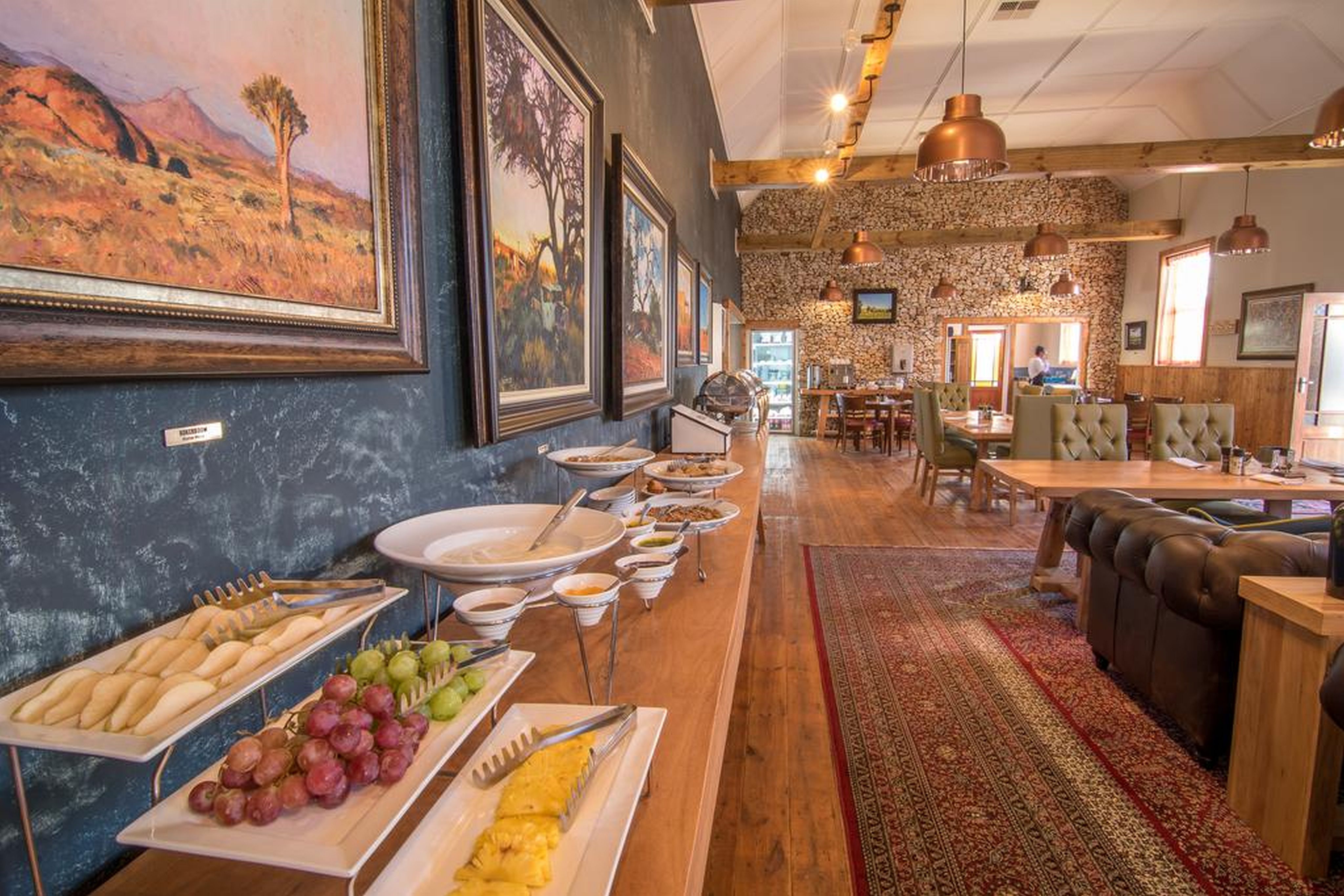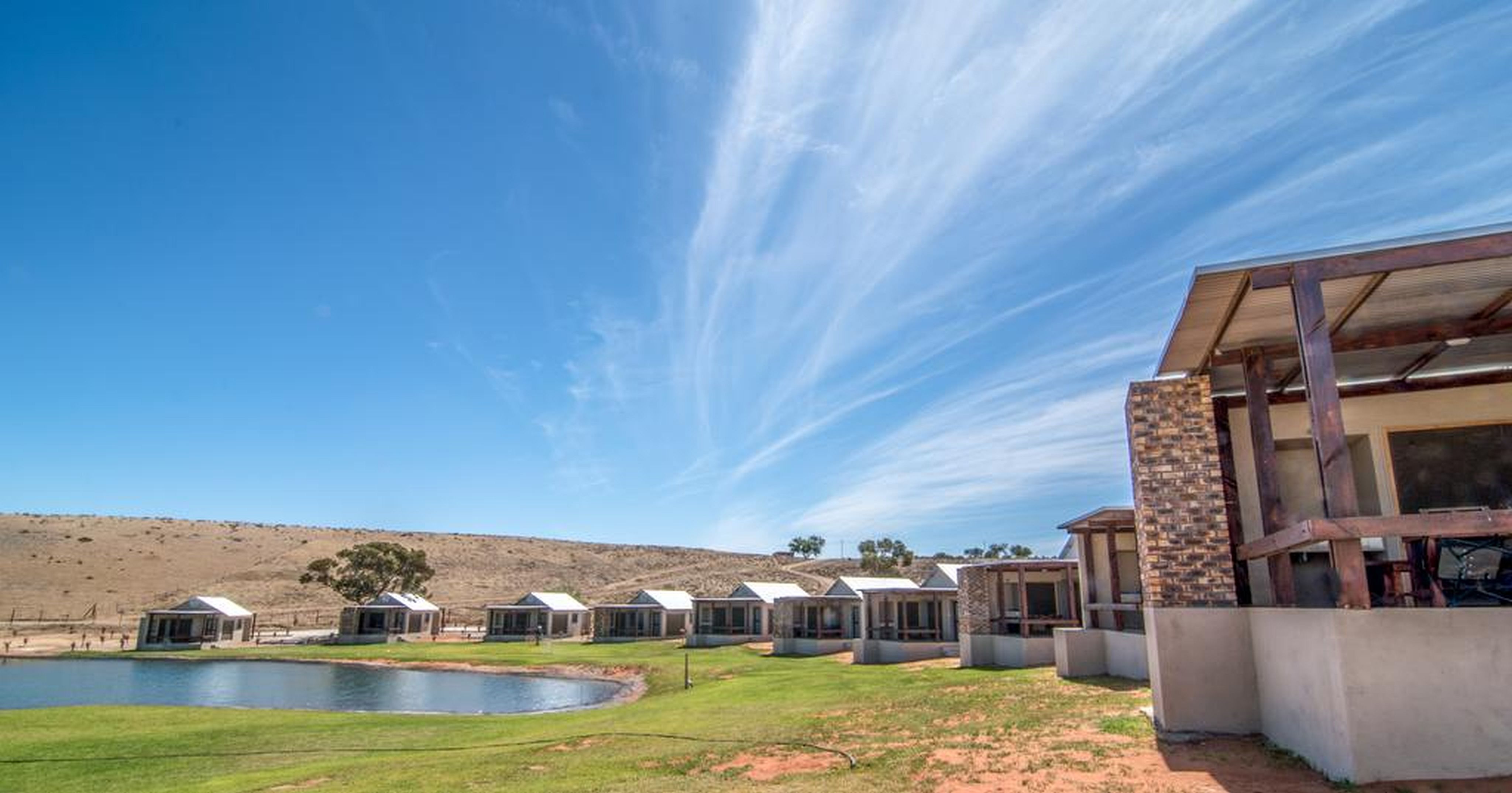 The lodge is designed like a small village with stone cottages set around a central swimming pool and fully licensed one stop shop. The Red Ox Steakhouse serves a wide selection of culinary delights with meat dishes a speciality.