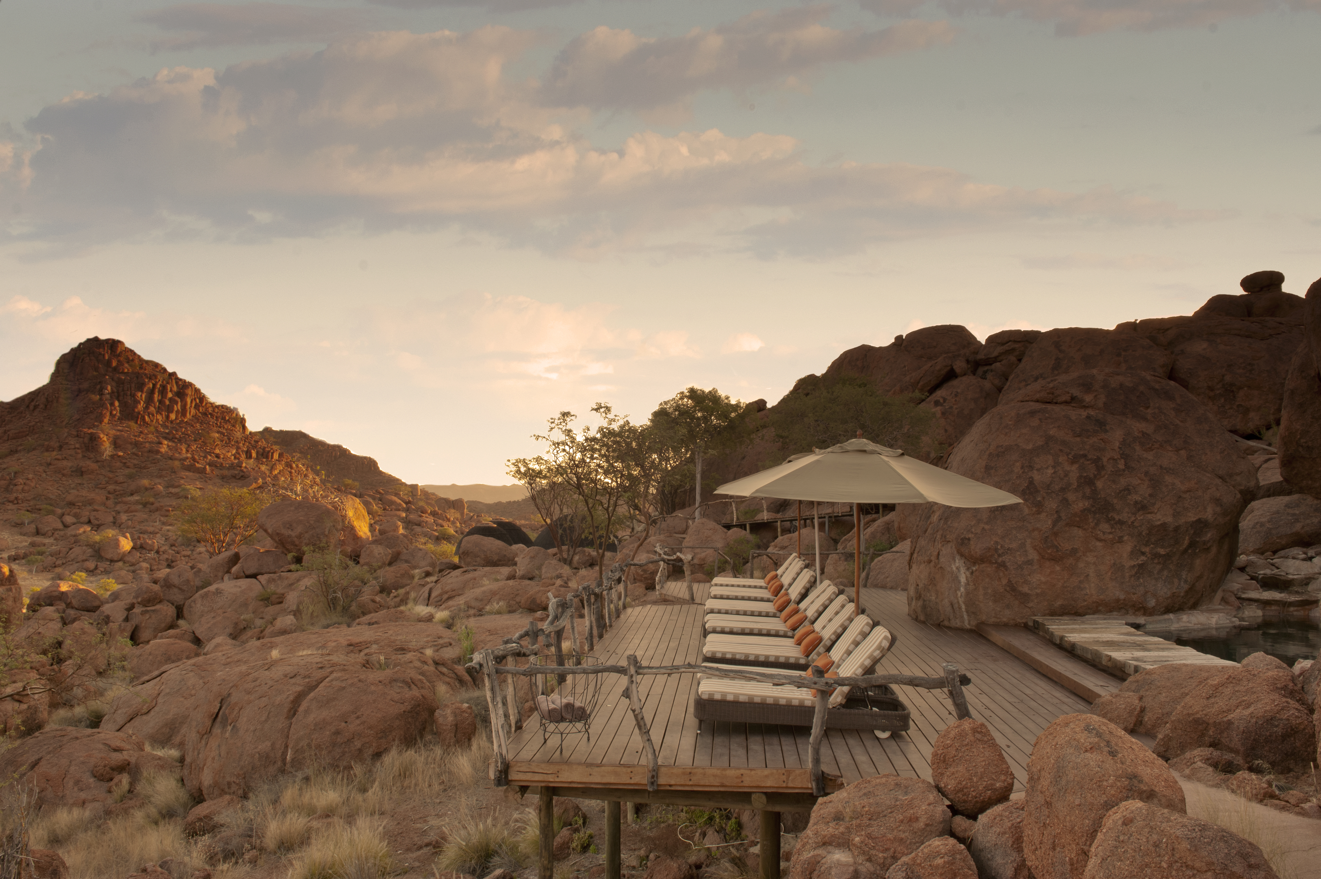 Guided nature game drives and hikes are arranged in search of the elusive desert elephant as well as tours to the historical site of Twyfelfontein and other archaeological sites of interest. The camp has an attractive rock swimming pool and plenty of secluded spots to relax and enjoy the scenery. A delicious, locally-inspired menu is served indoors or al fresco to make the most of the dramatic location.