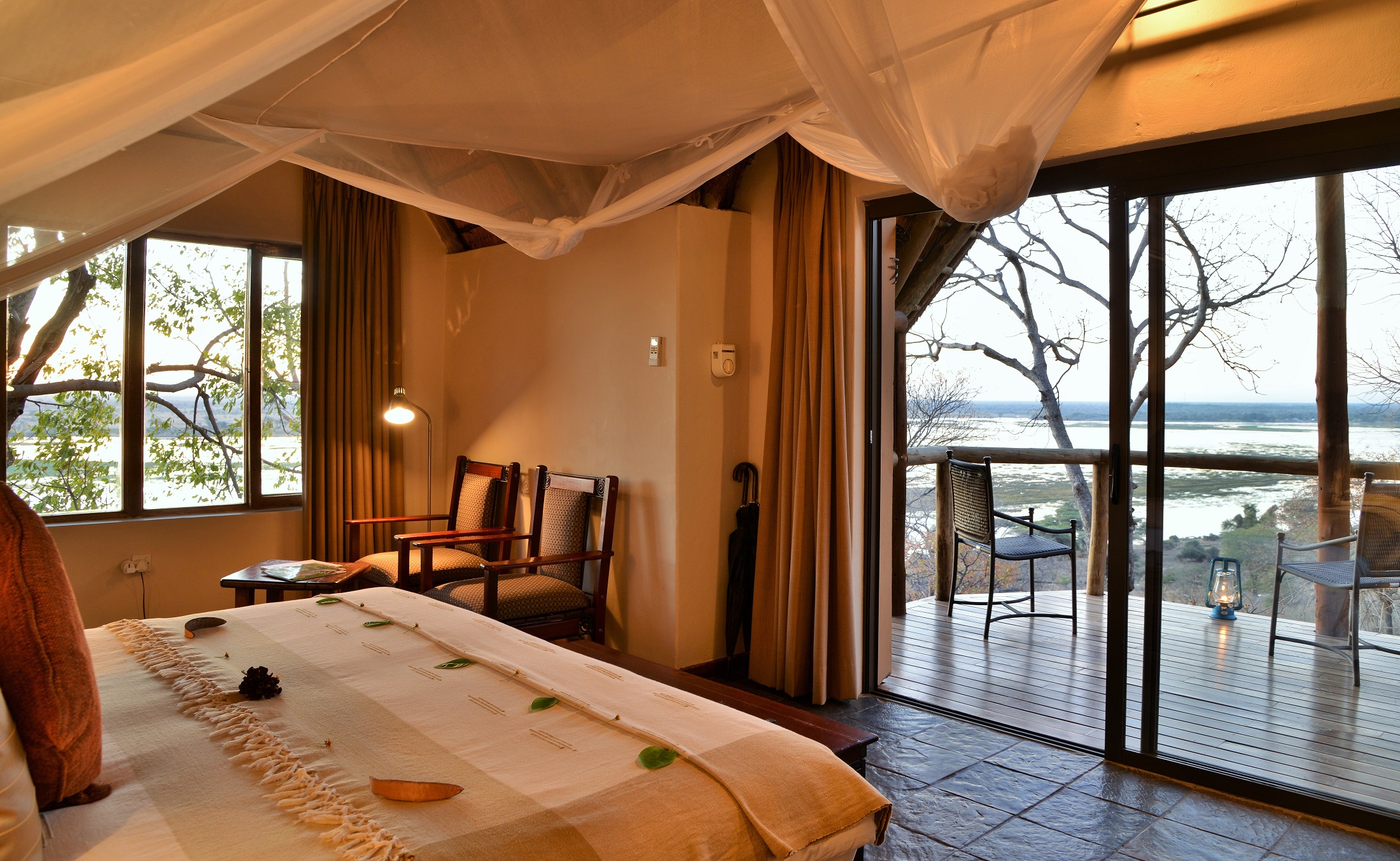 There are 11 traditional cottage-style chalets with tasteful African décor, private balcony and spacious en suite bathrooms.