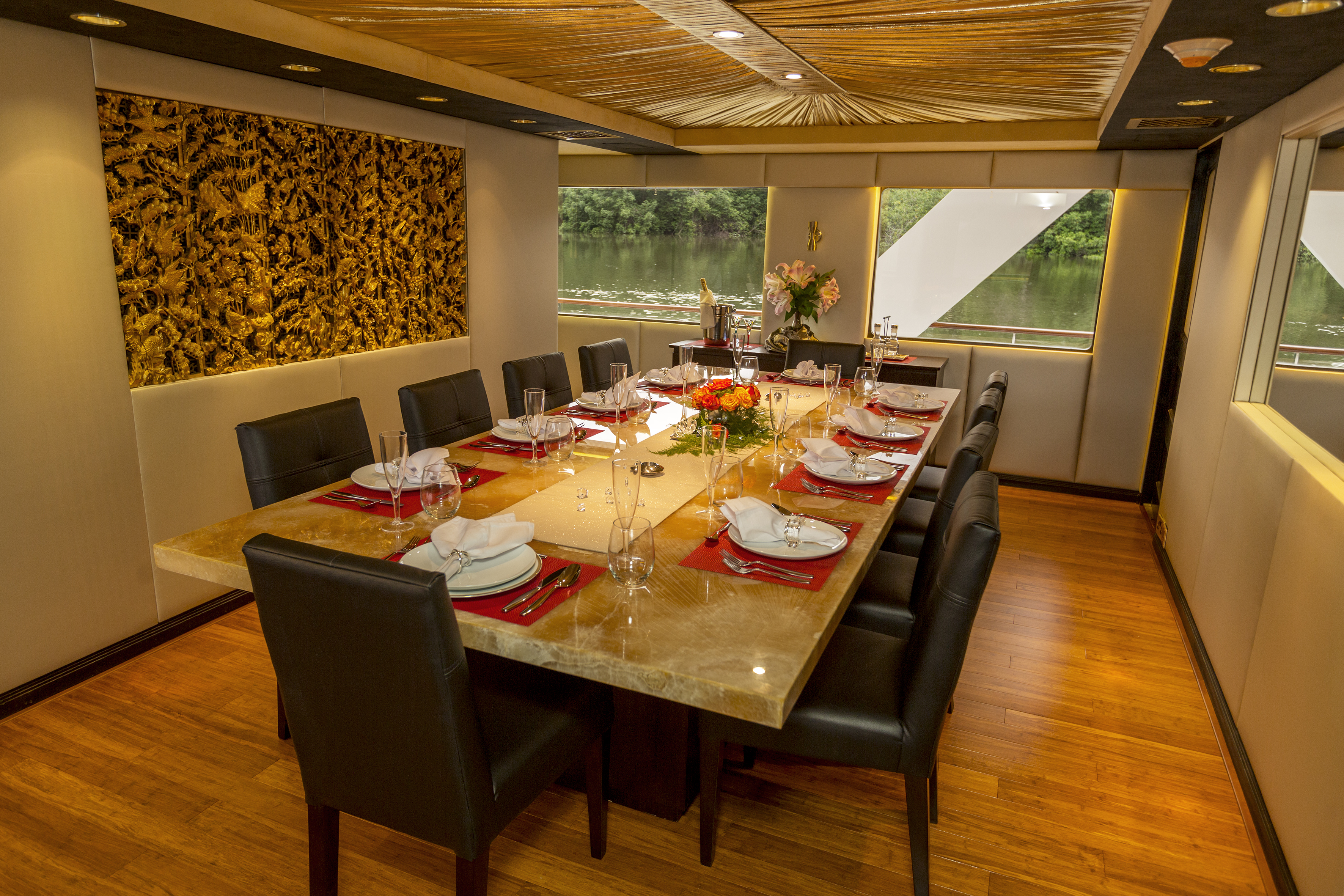The ratio of one staff member per guest ensures first class service. The finest gourmet cuisine is served in the dining room throughout the cruise. There are also ample areas for relaxing and viewing the surroundings with a panoramic sky lounge and sun deck with jacuzzi.