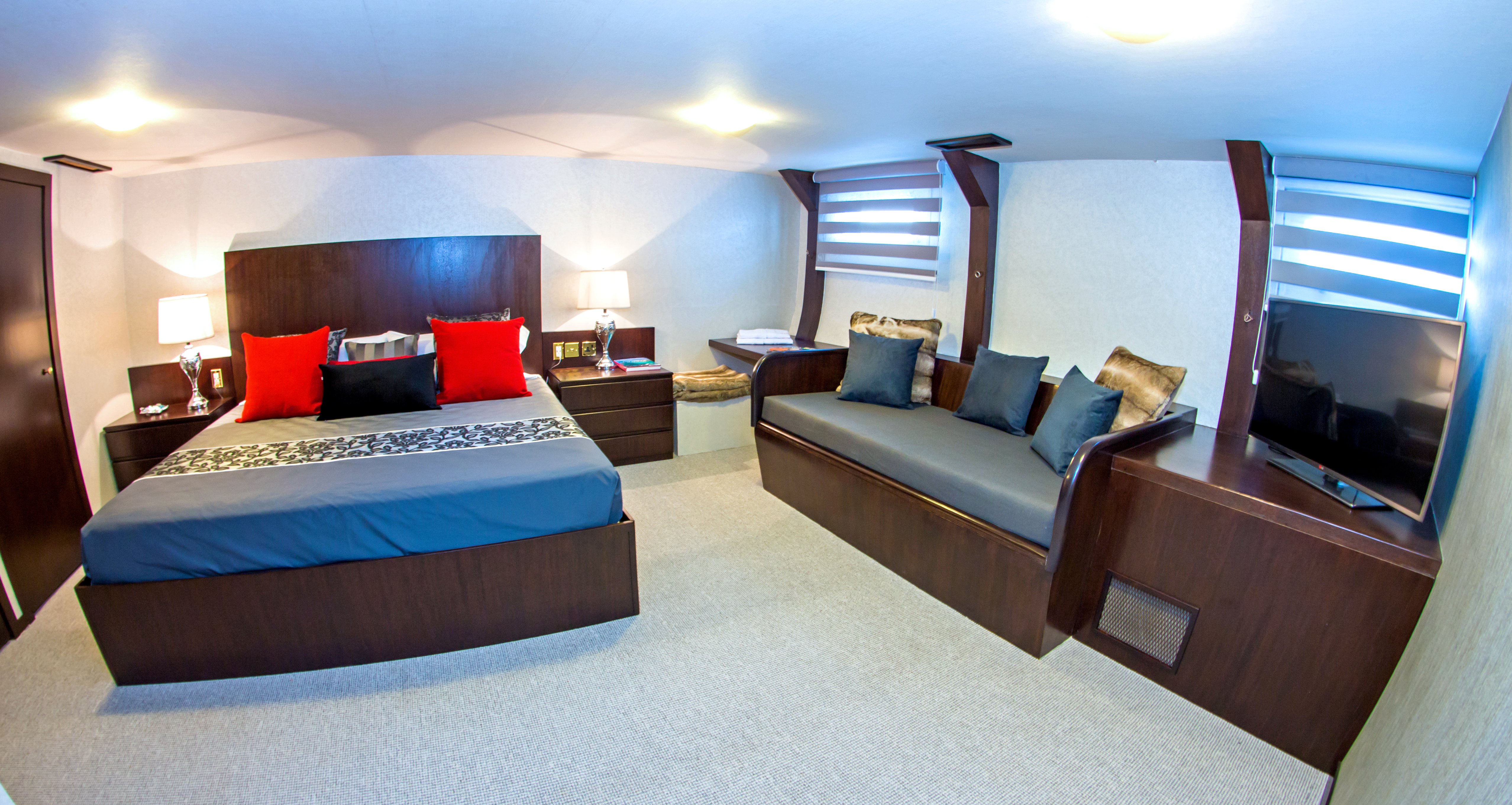 Originally built as a private luxury yacht, the M/Y Passion Yacht has been completely refurbished while still retaining many of the original elegant features including rose coloured marble bathrooms and teak wood decks, which make the vessel unique. She measures 159 feet (48.5 metres) and has four decks offering an exceptional amount of space for its 12 passengers to emjoy on their cruise of the Galapagos Islands.