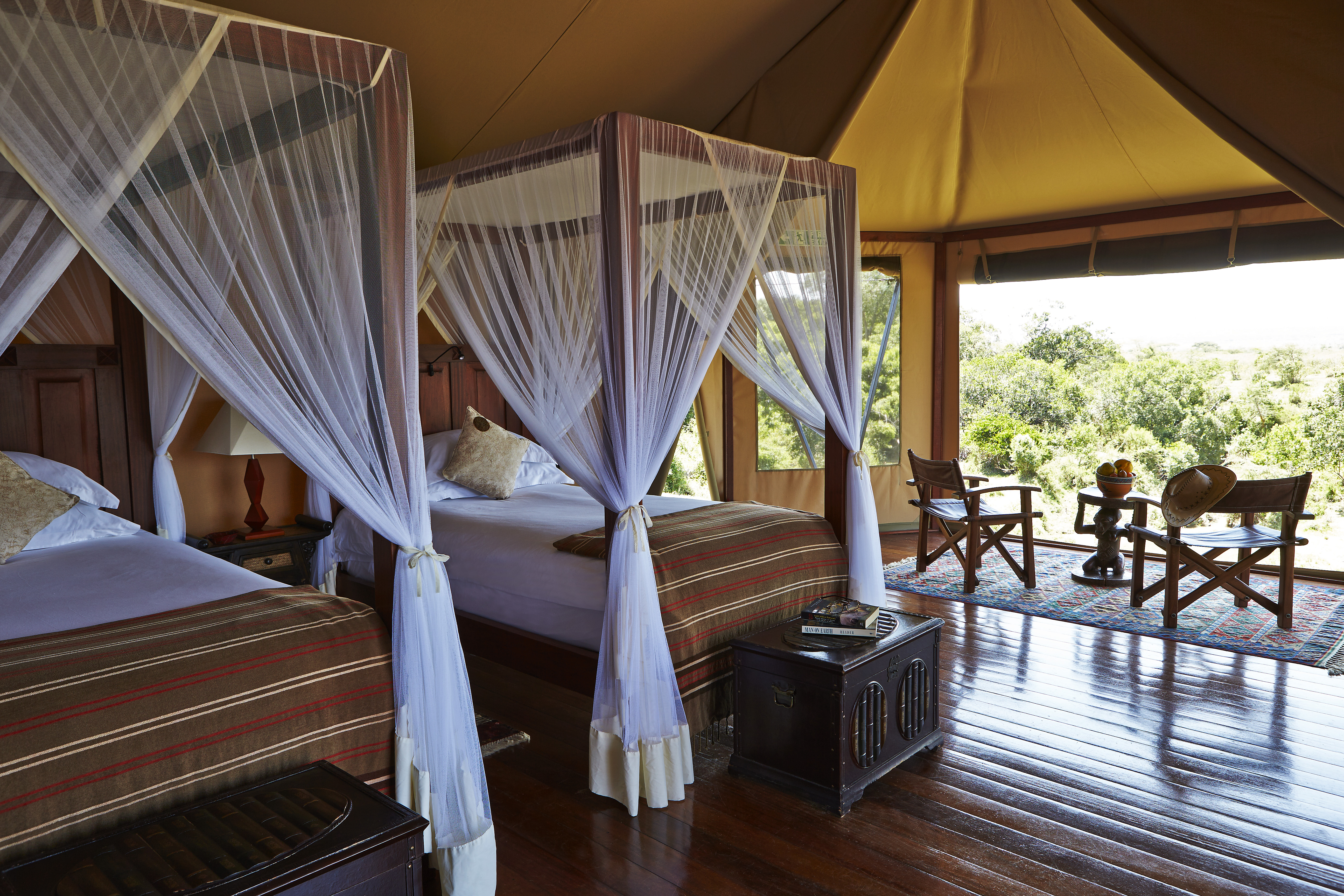 • Olare Mara Kempinski Masai Mara has 11 Deluxe tents set on wooden platforms with terraces with views across the plains.