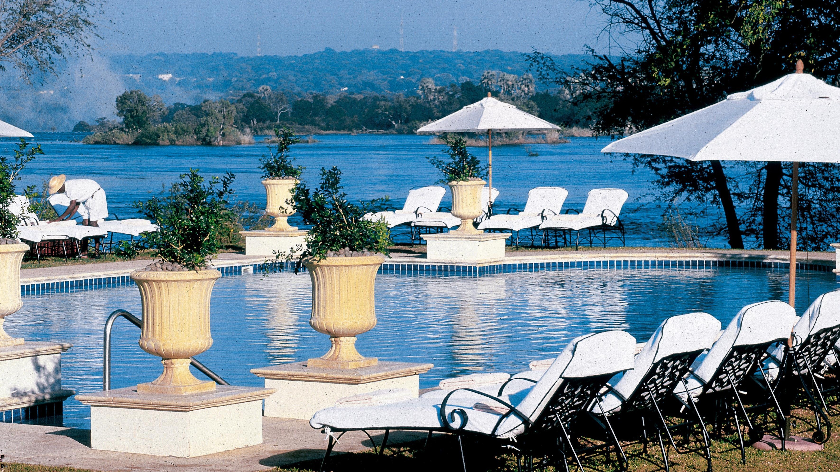 On the banks of the Zambezi River and within walking distance of the Victoria Falls, the Royal Livingstone Resort offers plush, luxurious accommodation. Its Victorian elegance and style reflect the golden era of travel with the tasteful addition of modern facilities.