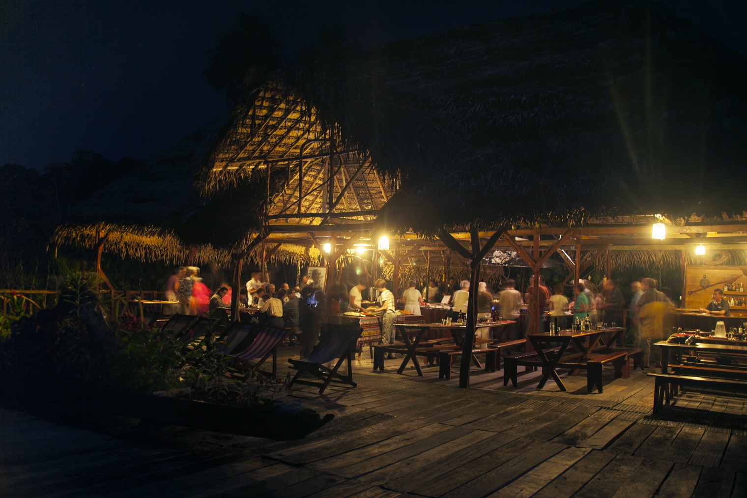 Days may be spent drifting in a canoe, hand-carved out of a single tree trunk, down narrow, winding creeks of black Amazonian water surrounded by lush, endless seas of tropical vegetation or creeping along trails in search or wildlife and plants. Under expert guidance you will discover Ecuadorian Amazonia at your own pace. Afterwards you will be thankful to relax in the bar or lounge before sampling the delicious buffets prepared by the chefs to suit a variety of tastes and diets.