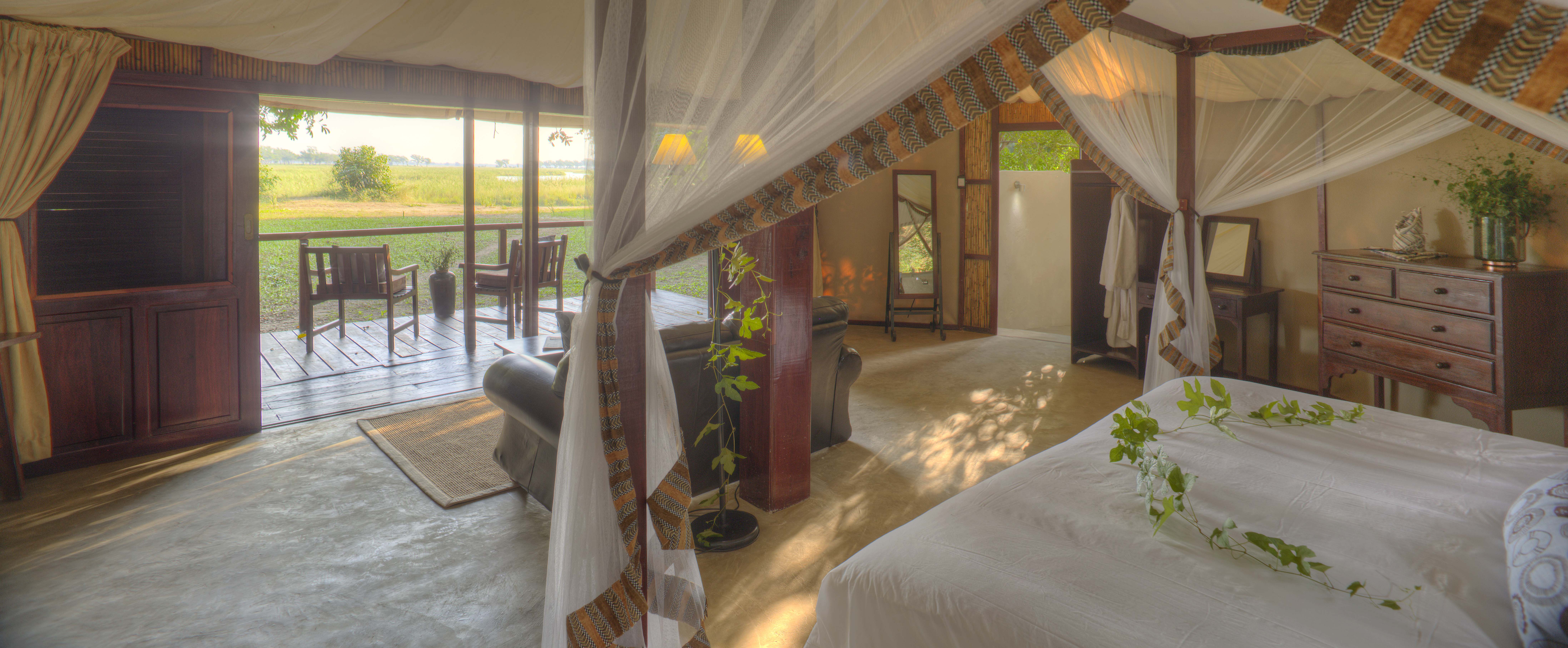In a dramatic, remote location on the game-rich banks of the lower Zambezi, Sausage Tree Camp offers luxurious tented accommodation and first class service. This camp enables guests to enjoy a bush safari experience without sacrificing modern luxuries.