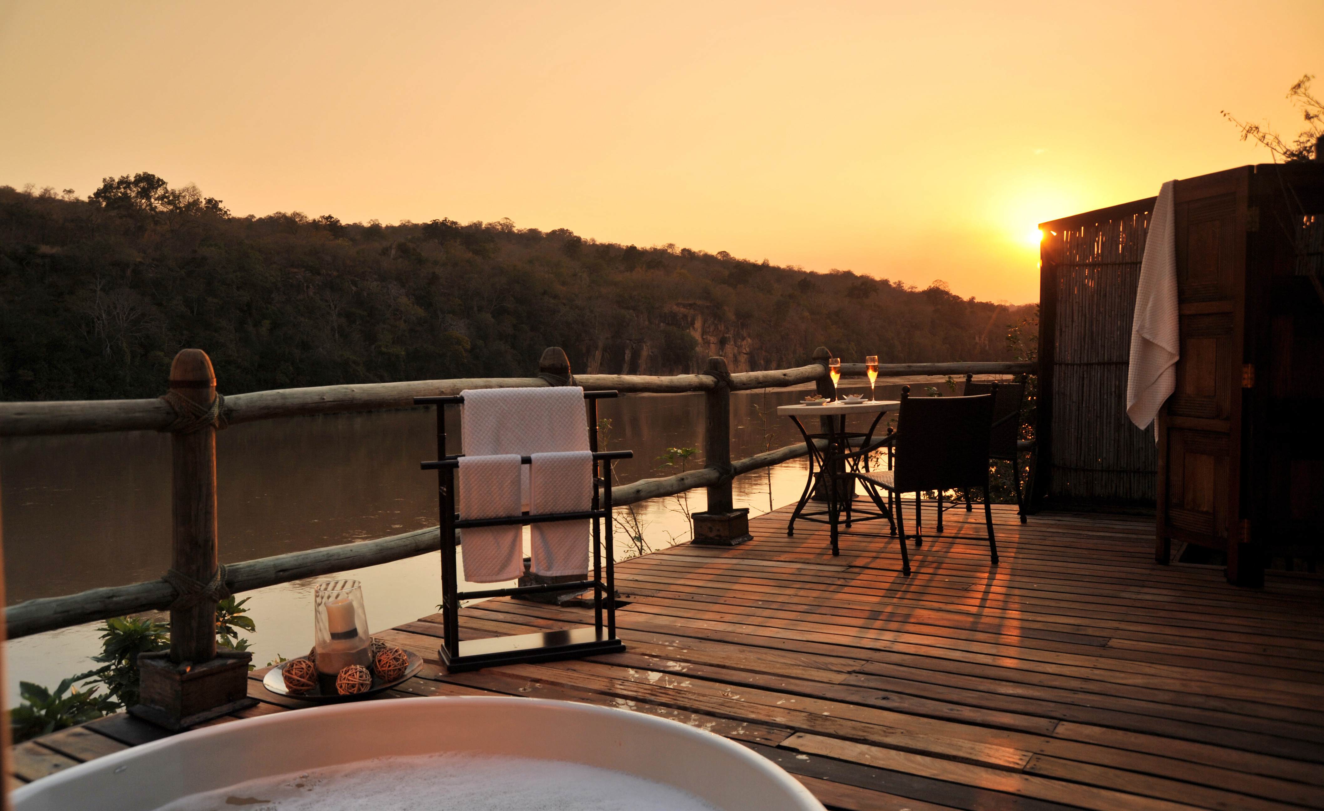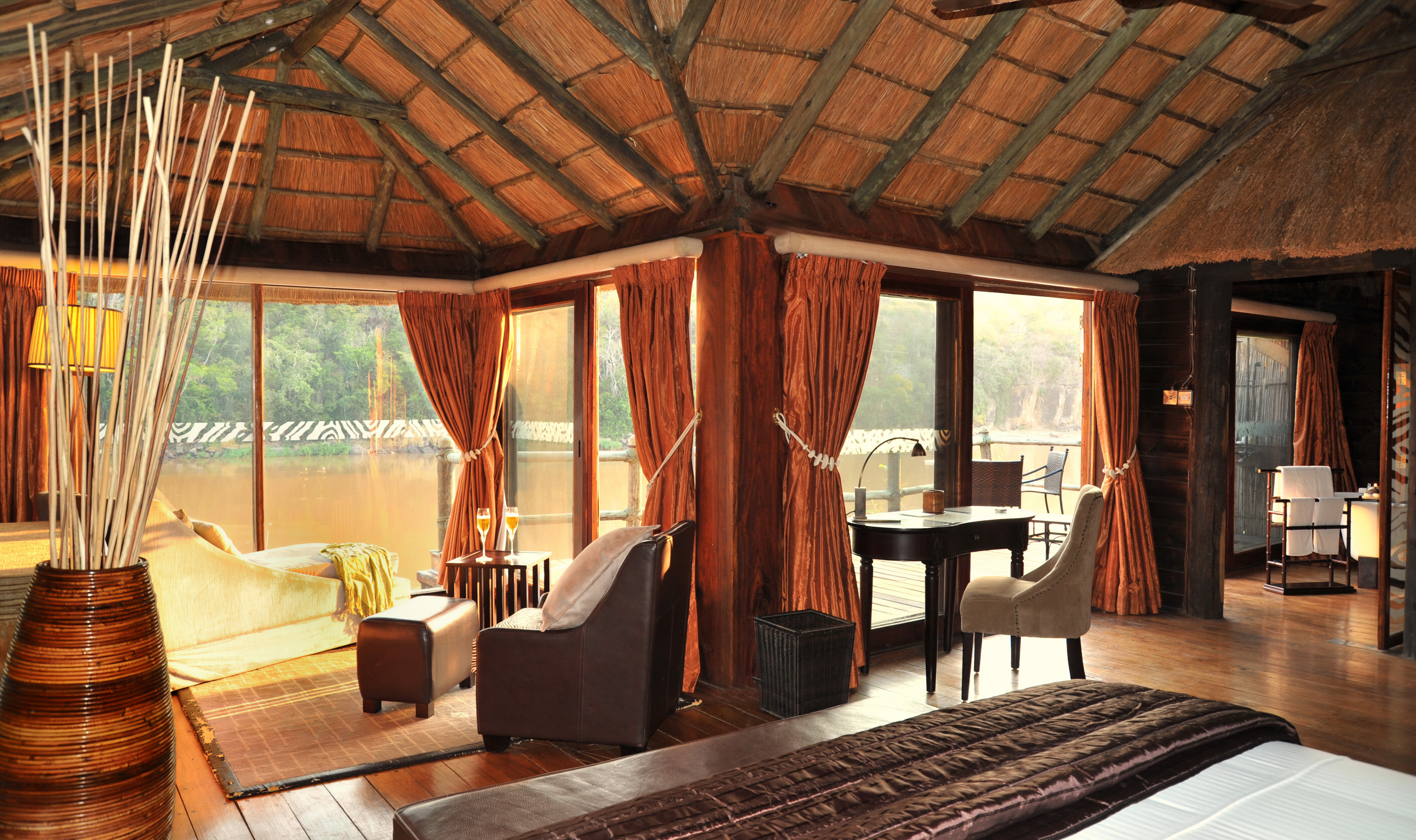 This small lodge offers an exclusive, luxury escape to one of the world’s last undiscovered wildernesses. Game and riverboat safaris take guests in search of the Big Five. The high concentration of elephants in particular promises some memorable viewings. The lodge has a sparkling infinity pool and inviting sun deck from where elephants, hippos and other wildlife may be seen. Spacious timber thatched buildings house the lounge, bar, library and dining room, where buffet breakfasts and African inspired evening menu are served.