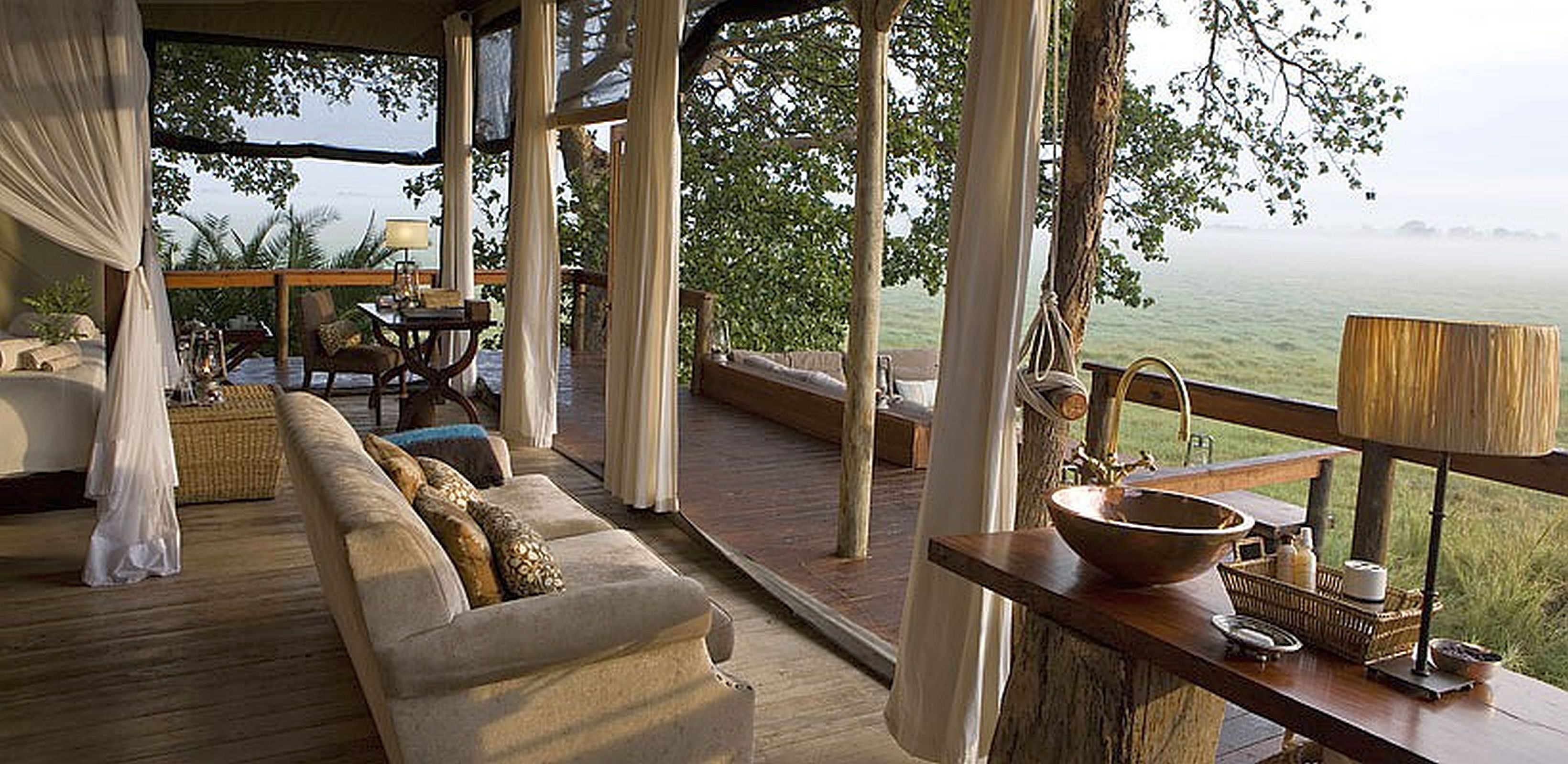 Highlights of any holiday are twice daily game drives, guided walks, bird-watching trips and boat excursions. A hot air balloon ride over the plains is another experience not to be missed.