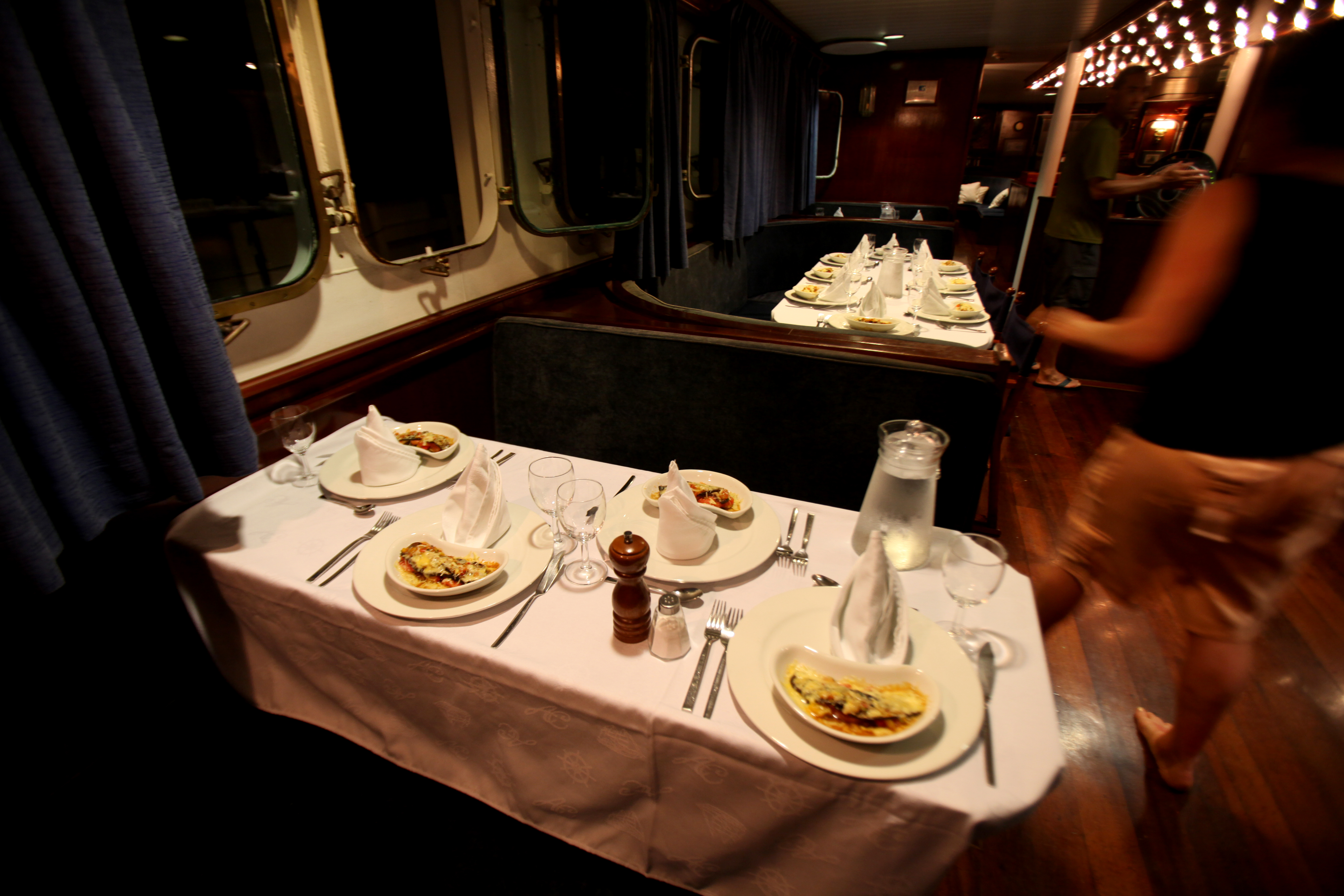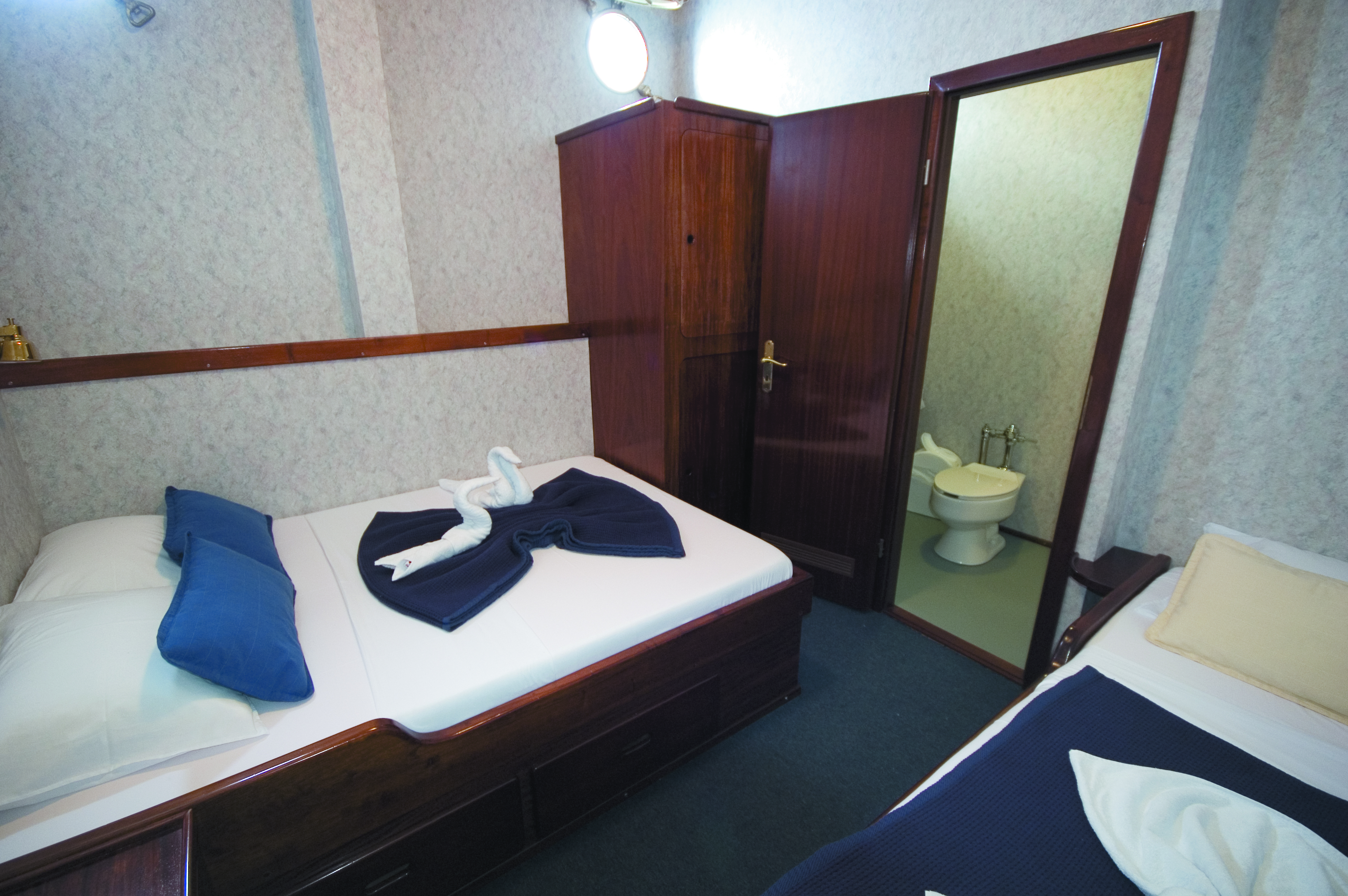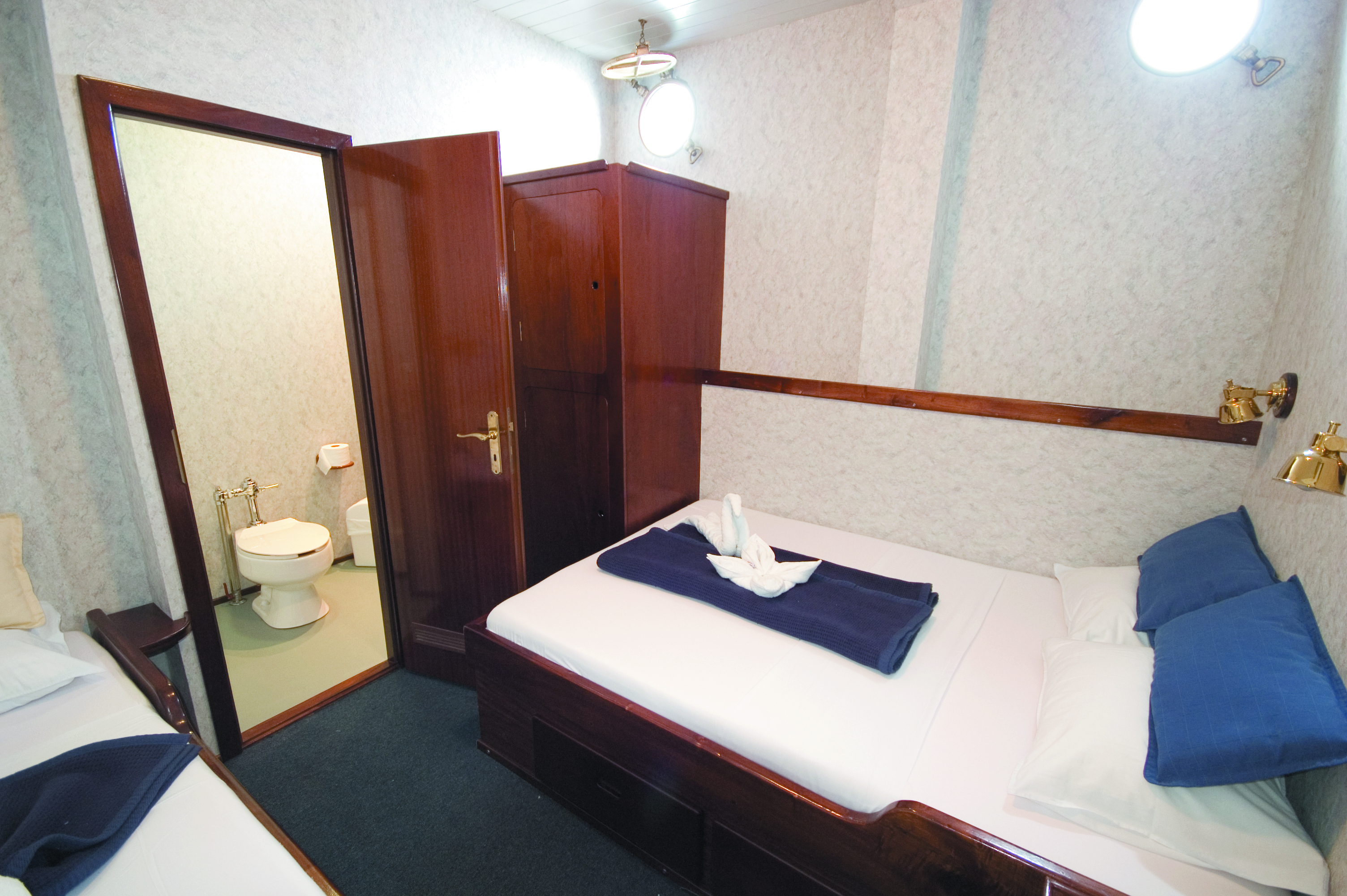 • All cabins have private bathrooms with hot water and all are designed with one double lower berth and a single upper berth.