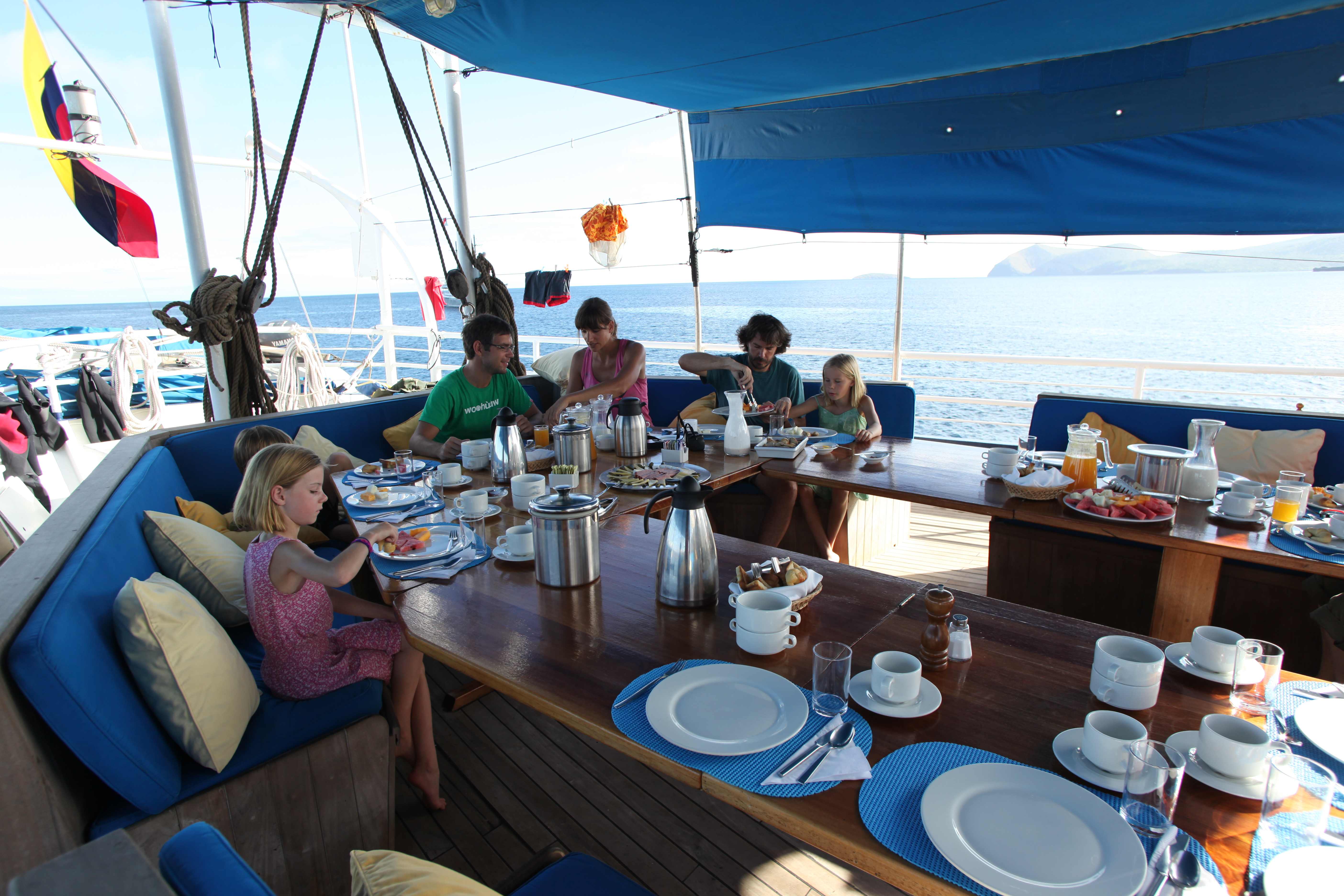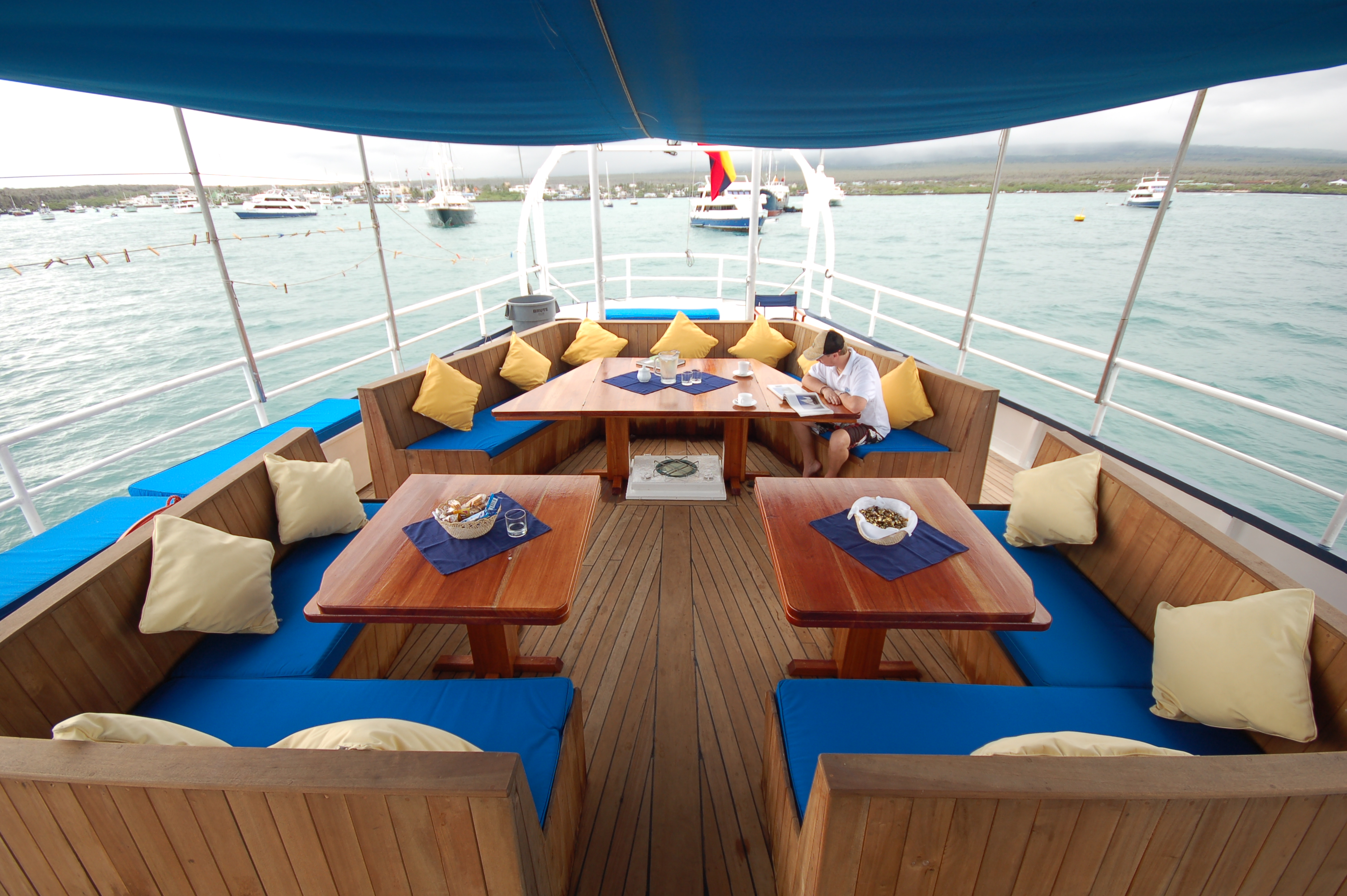 Launched in 1997, this elegant barquentine was designed specifically with environmentally friendly Galapagos Islands operations in mind. The Mary Anne is the perfect ship for those who love to travel under sail as she has 1000m2 of canvas with which she majestically takes to the waves. There is ample public space with an enormous wood panelled bar-lounge and dining room area where guests can enjoy an informal atmosphere. The layout of the boat also provides a large deck space with a cushioned seating area to the front of the vessel.