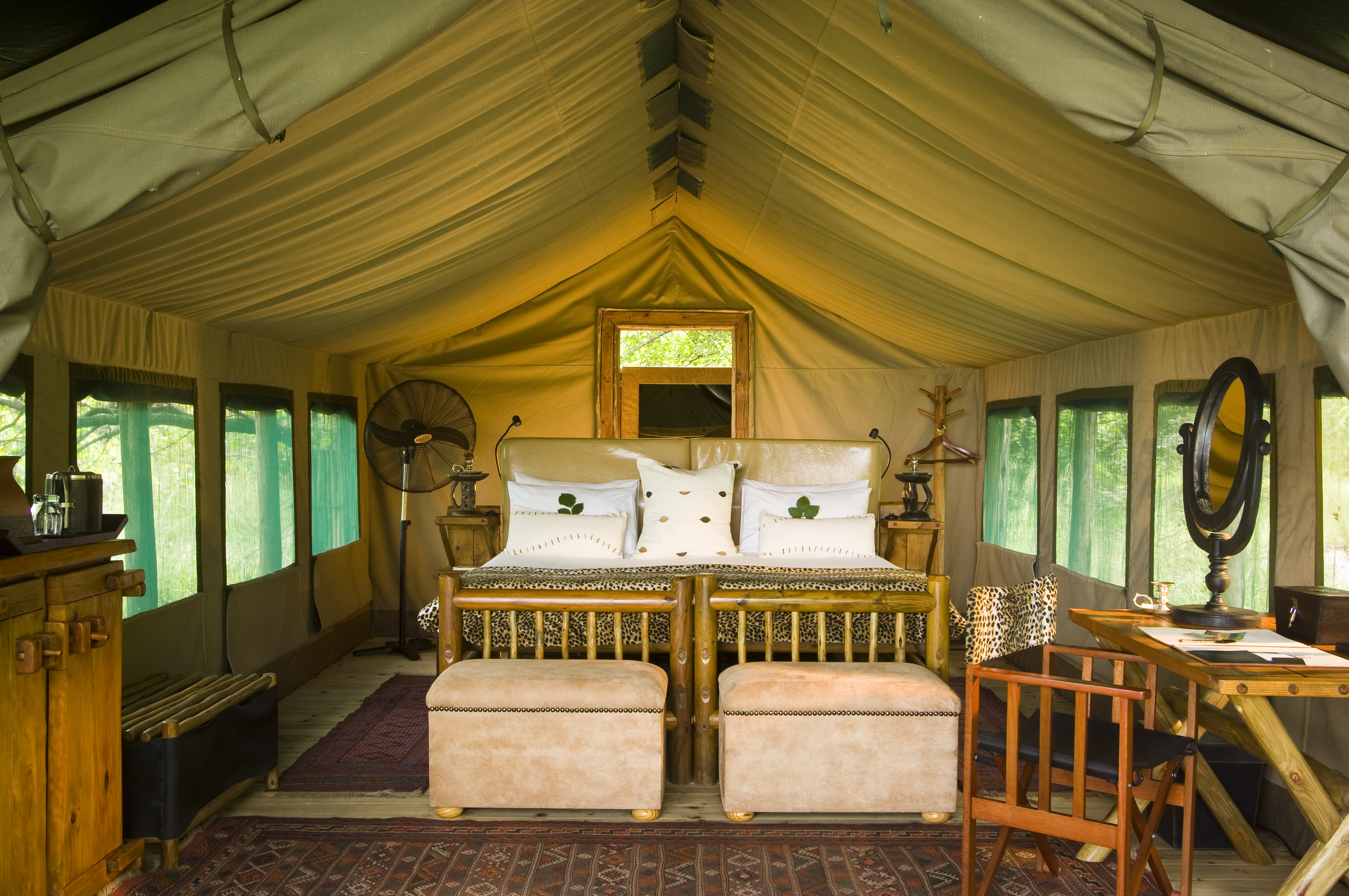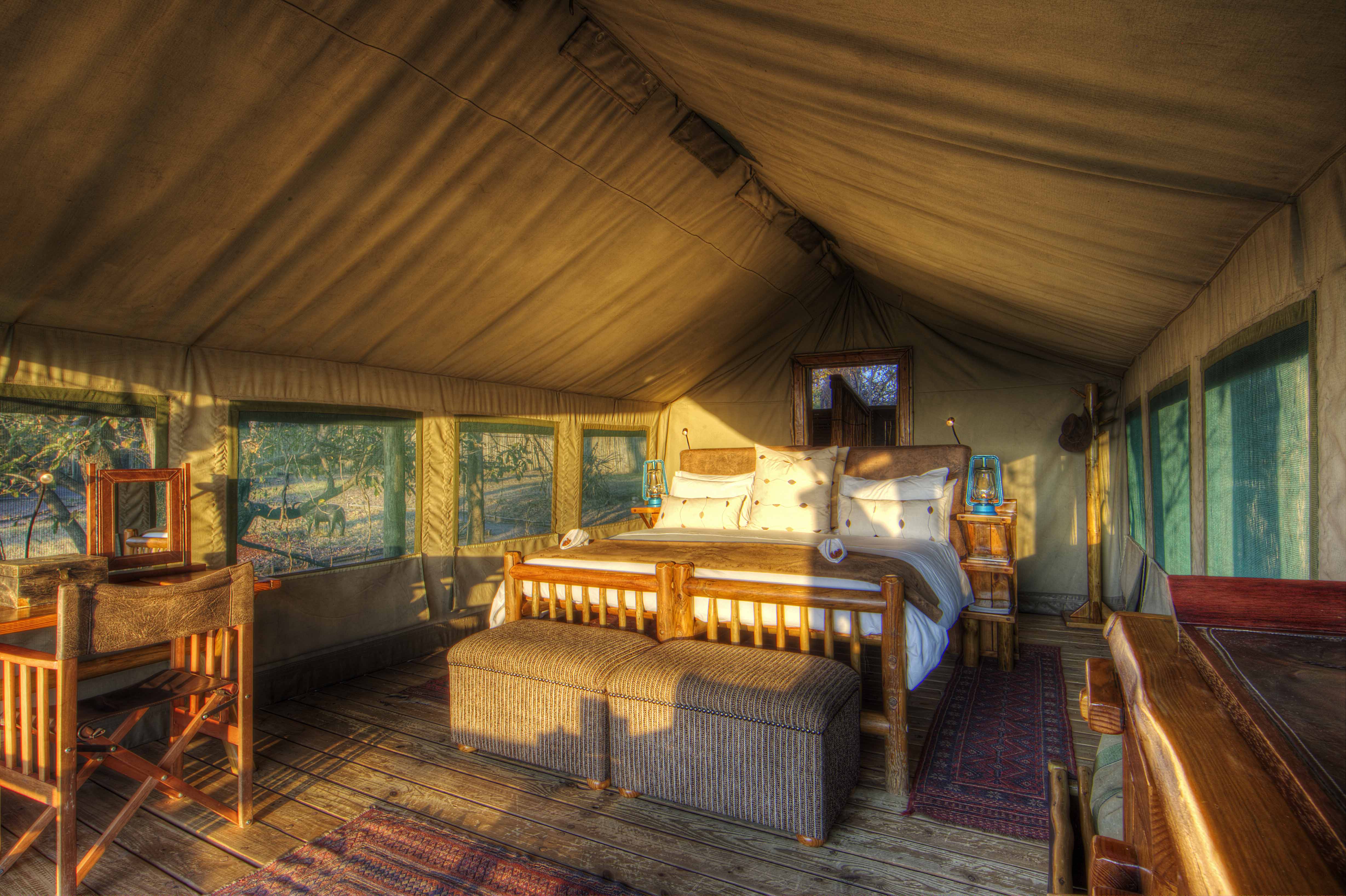 • There are 12 spacious, comfortable safari tents set on wooden platforms, overlooking the Khwai River.