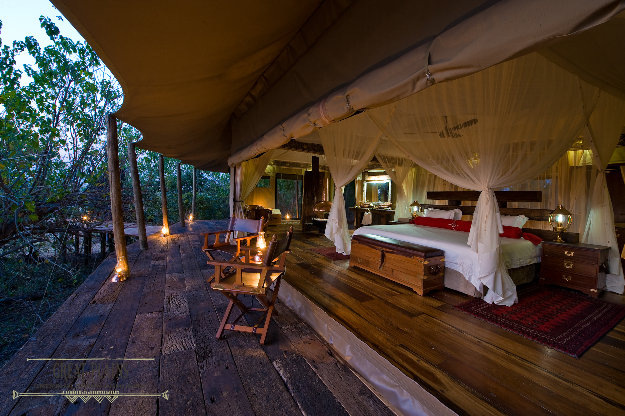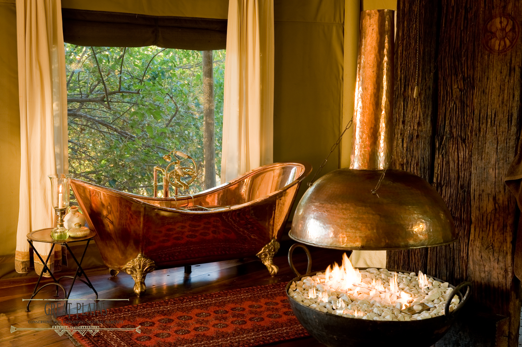 • There are 4 large canvas and wood tents with lounge areas, gas fireplaces and en suite bathrooms with indoor and outdoor showers.